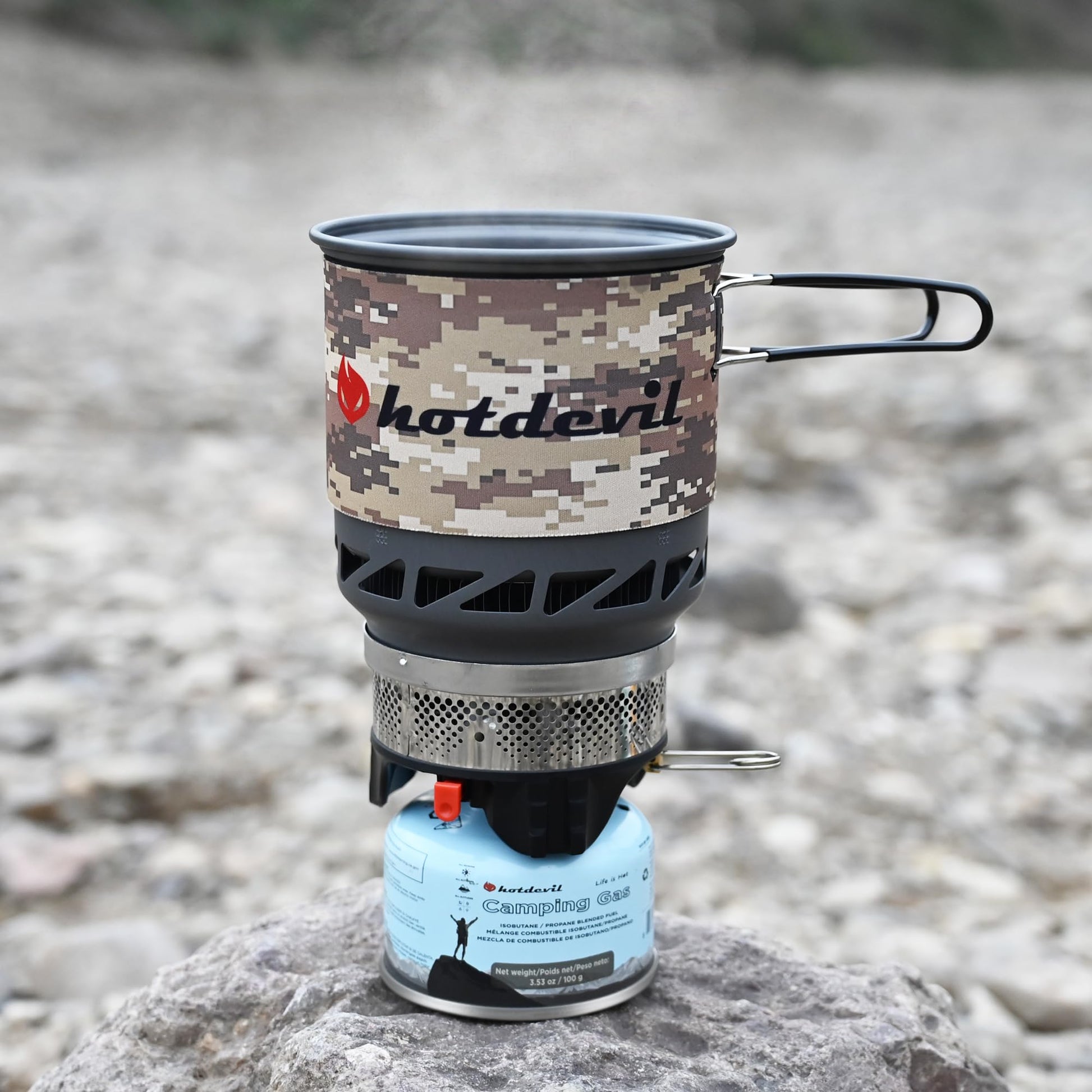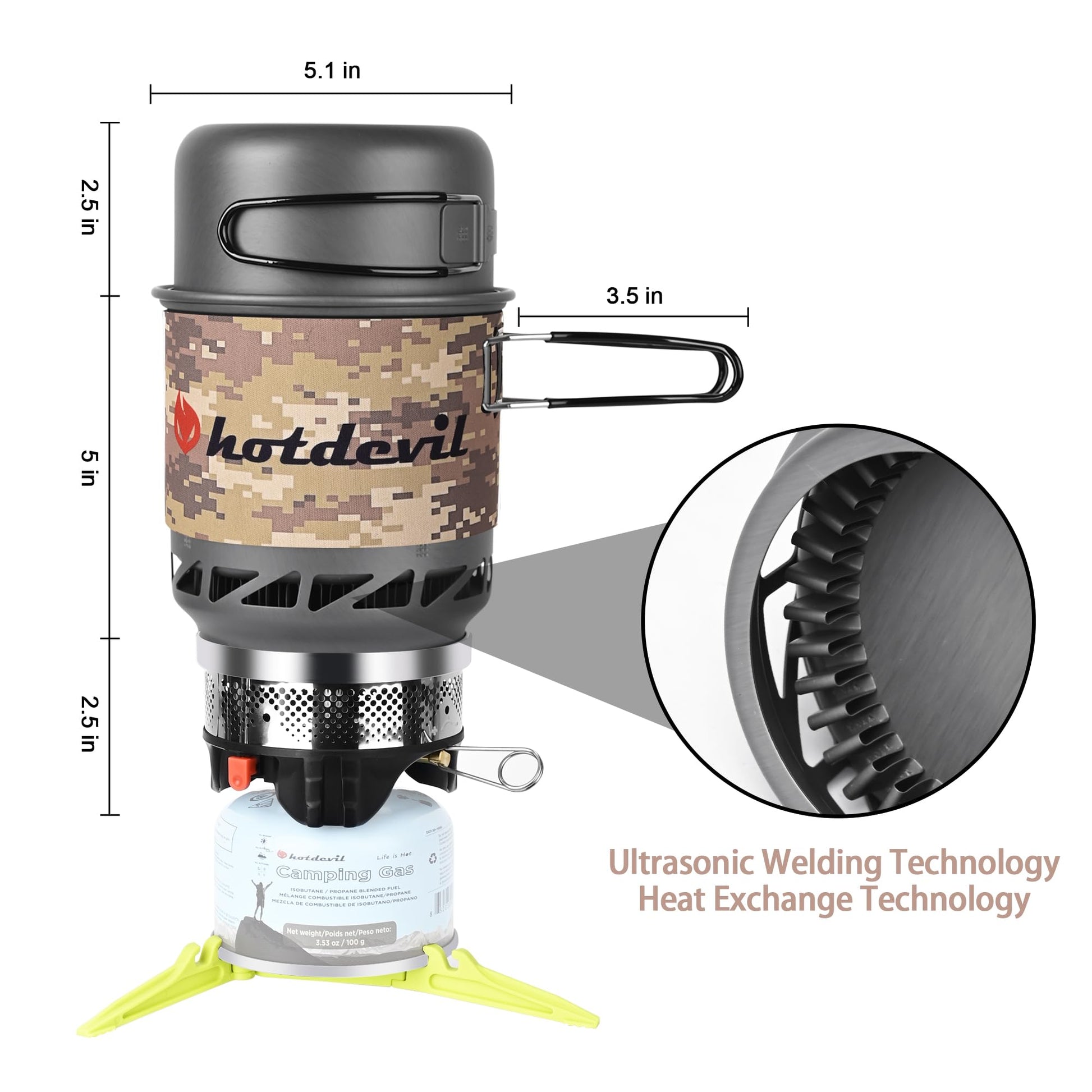 - 0.75L Pot+0.25L Cooking System: A high-quality burner, 0.25L bowl, 0.75L pot, a fuel canister stabilizer and a mental holder are included as an integrated backpacking stove cooking system. Turn on gas knob and heat can start instantly with a reliable piezoelectric igniter. If you want to use other cookwares, the provided pan support also helps you explore more cooking possibilities.