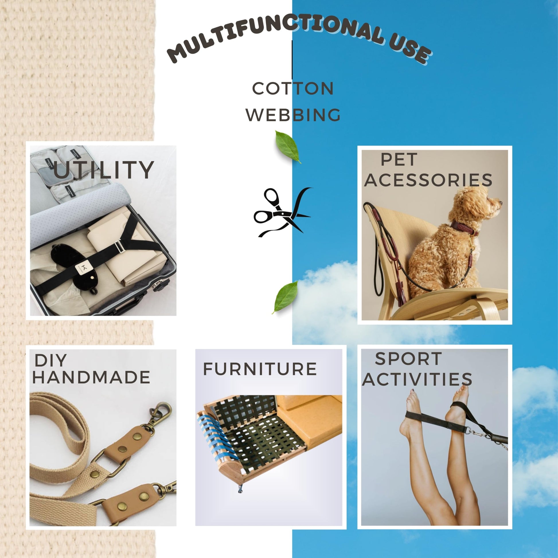 - Easy to Maintain: Cotton webbing is machine washable and easy to care for. It can withstand high temperatures and repeated washing and drying cycles without losing its shape or color.