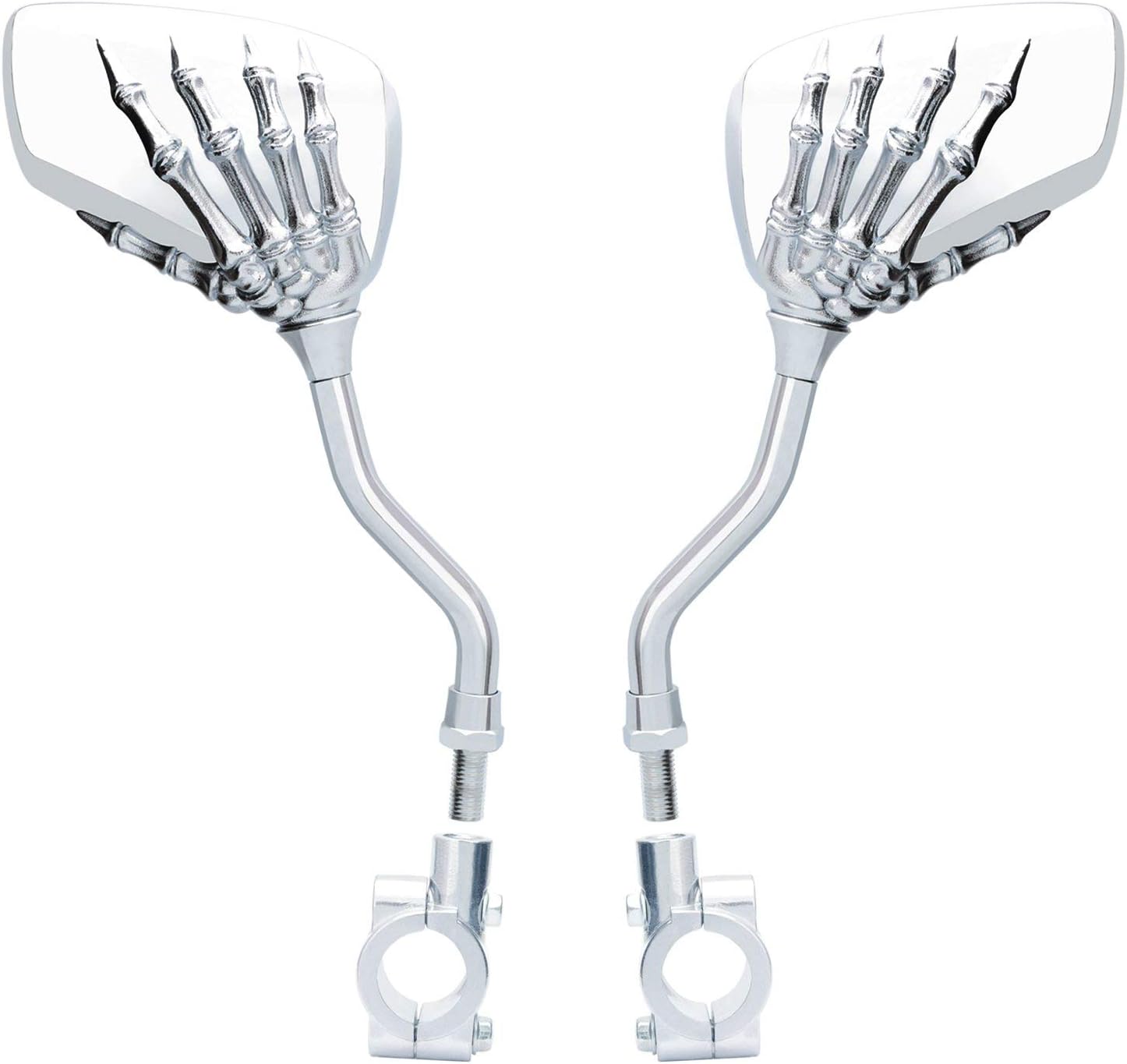 1 Pair Bicycle Mirror,Big View Bike Rear View Mirror Blindsight Multi Angle Adjustable Bike Mirror Billet Aluminum Chrome Plated Outside Skull Claw Style Also suitable for motorcycle mirror