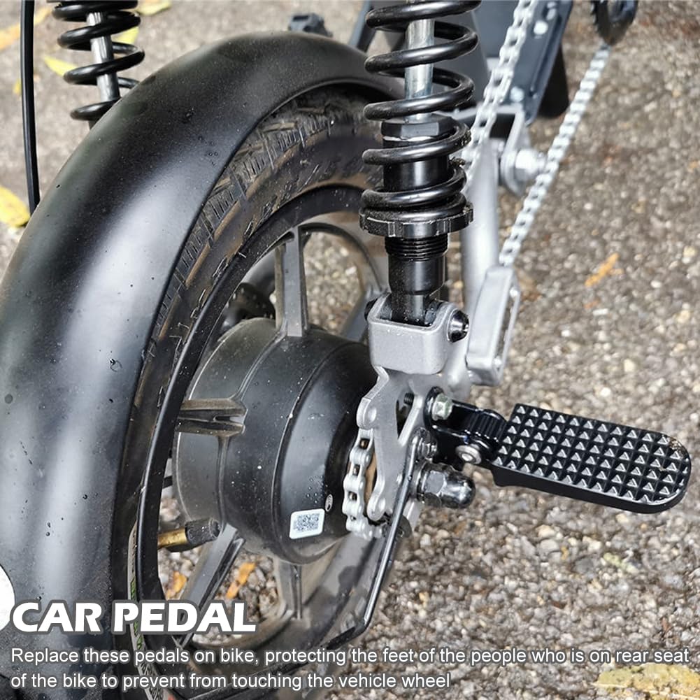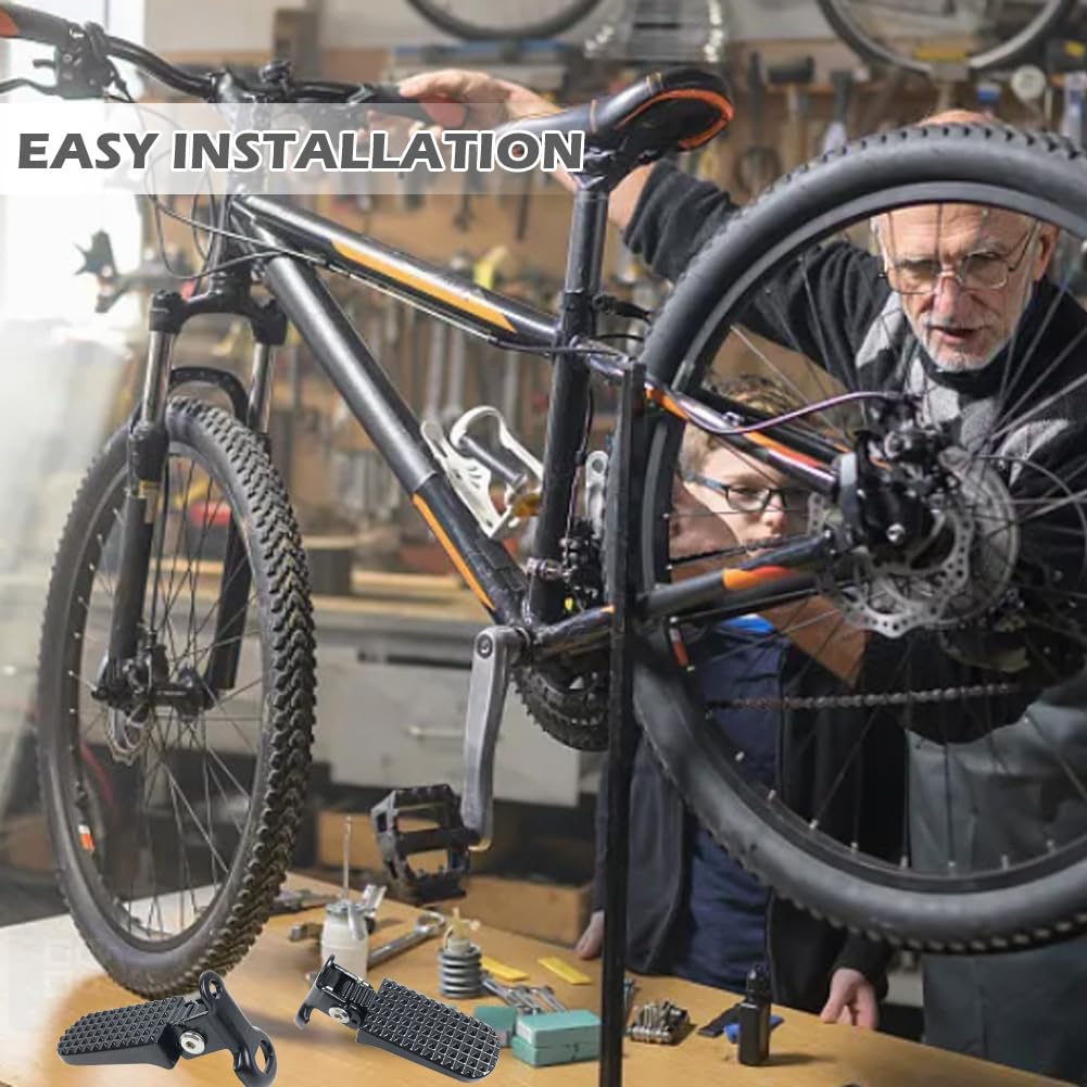 - Complete with a protective mechanism that can help protect and relax your feet throughout your ride.Package Included:2 pieces mini bike foot pegs.
