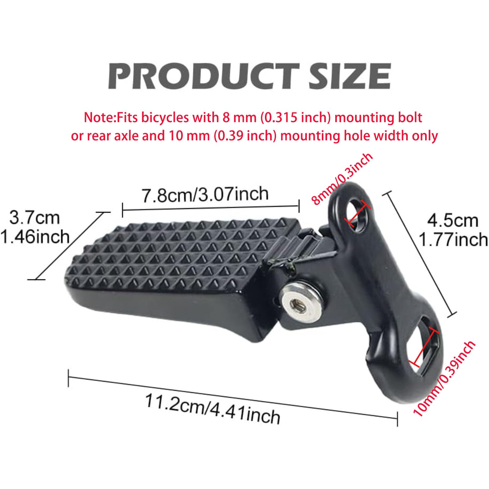 - Notice:The item doesn't include bolts and nuts to install the pedal .Fits bicycles with 8 mm (0.315 inch) mounting bolt or rear axle and 10 mm (0.39 inch) mounting hole width only. Please confirm size before ordering.