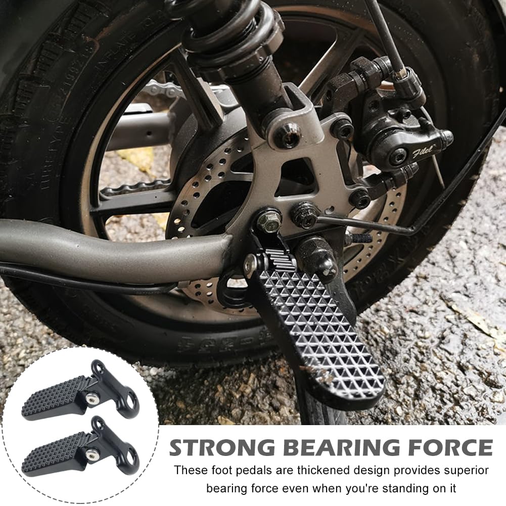 - Foldable design ensures easy storage and portability for your convenience.Can be folded up when riding the bike without a person, and will not scratch objects or other people. Unfold it when you need to rest your feet.