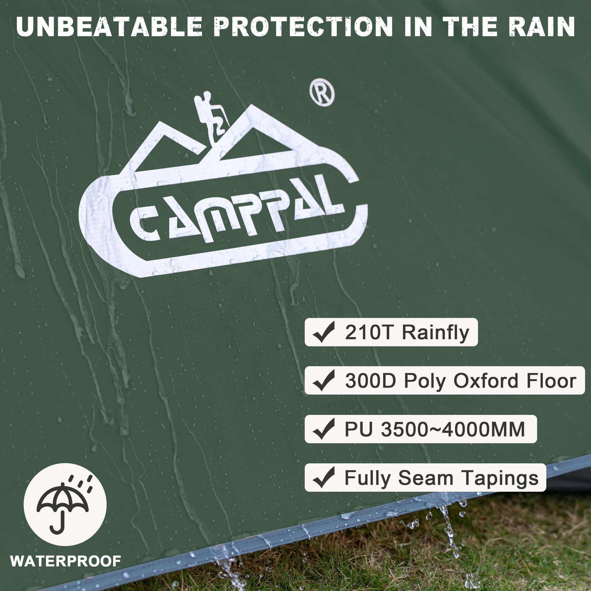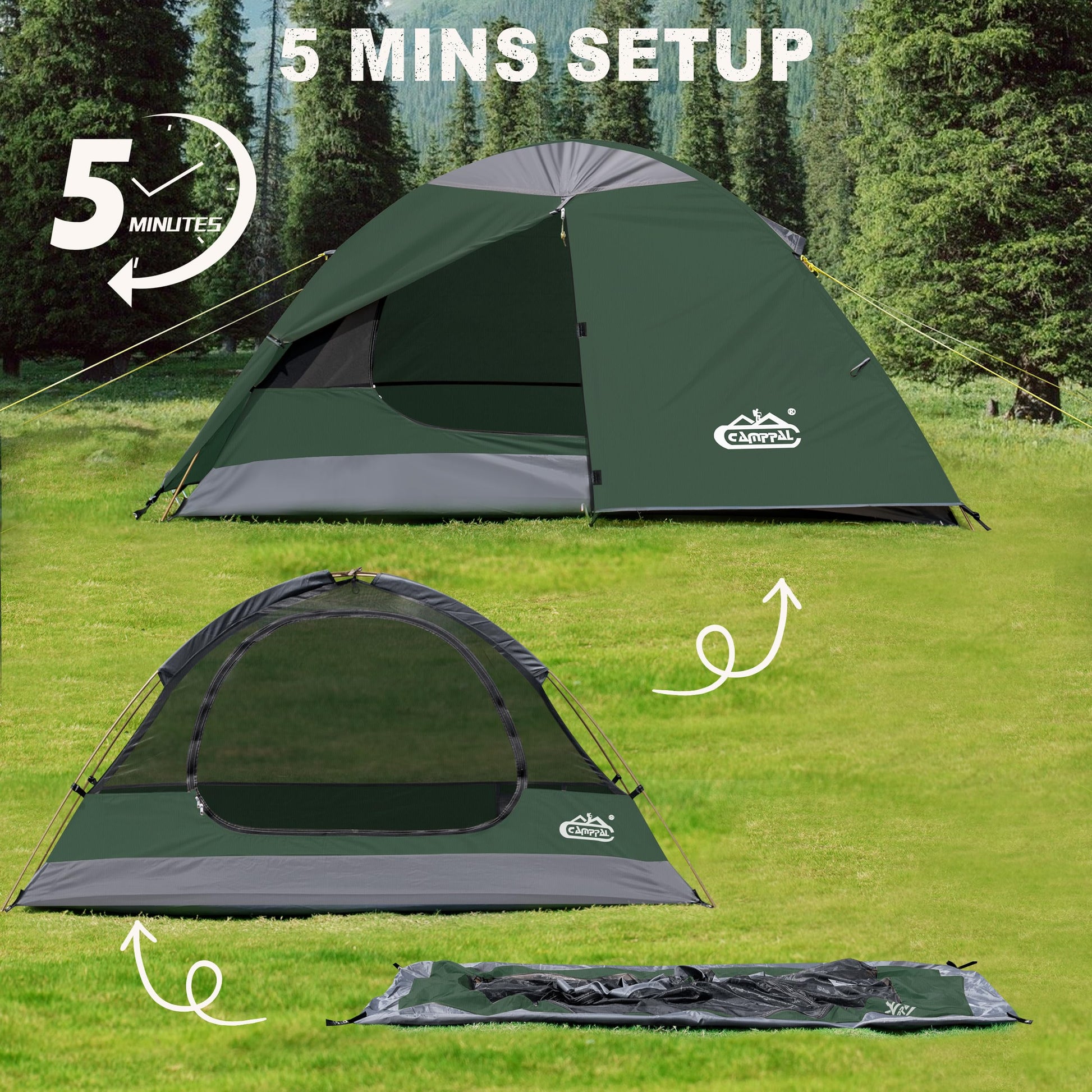 - 【Waterproof Tent】Crafted with top-quality materials, this single person tent features a 210T rainfly with a waterproof rating of 3500mm and a 300D Poly Oxford floor with a 4000mm waterproof rating, offering maximum rain protection. The one person tent is fully seam-taped, from the zipper to the four corners, ensuring no leaks during heavy downpours. Field-tested, this camping tent for 1 person will keep you dry even in harsh weather conditions.