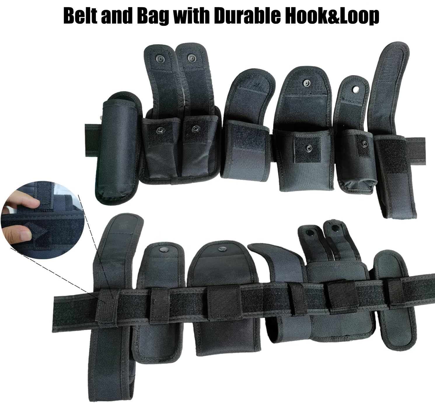 - 【10 in 1 Security Hunting Game Belts and Bags】Fully cooperate with the tactical team,Adjustable tactical belt for law enforcement with 9 various multifunctional holster pouches component. Made of 1680D nylon, sturdy, durable, wear-resistant and tear-resistant.