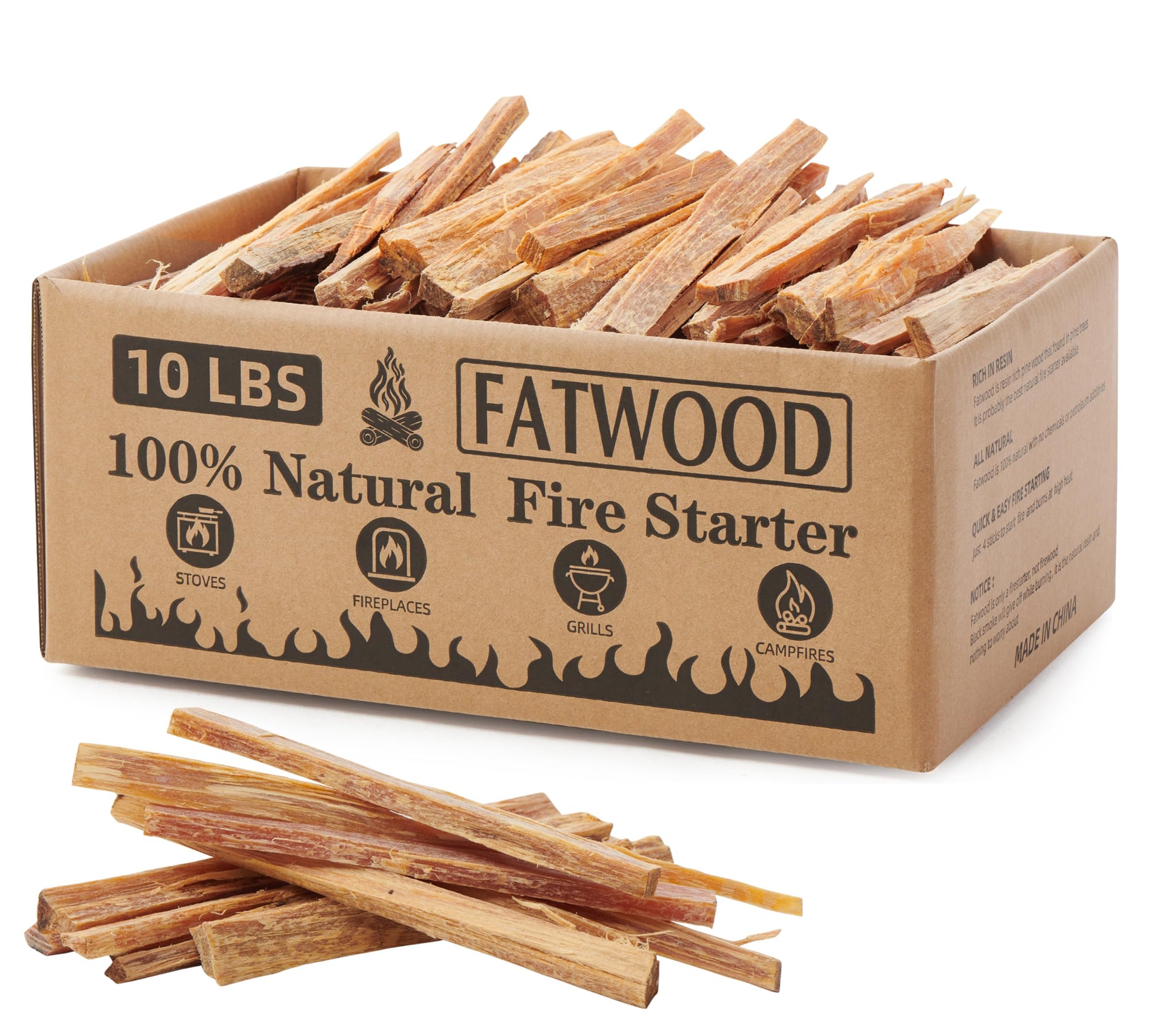 10 Lbs Fatwood Fire Starter Sticks, 100% Natural Kindling, Pine Firewood Firestarter for Campfire, Stove, Fireplace, Bonfires, Grill
