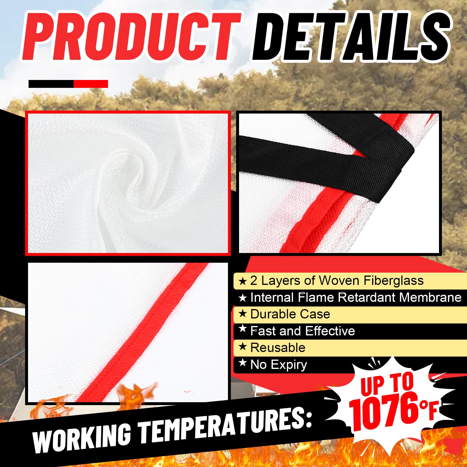 - Durable and Long Lasting: the fireproof welding blankets are constructed of two layers of woven fiberglass and an internal flame retardant membrane, last and built to withstand the intense heat of a fire and will not deteriorate or lose their effectiveness over time, comply with EN-1869: 1997 Standard for Cooking Fire Suppression, can withstand temperatures up to 1076°F