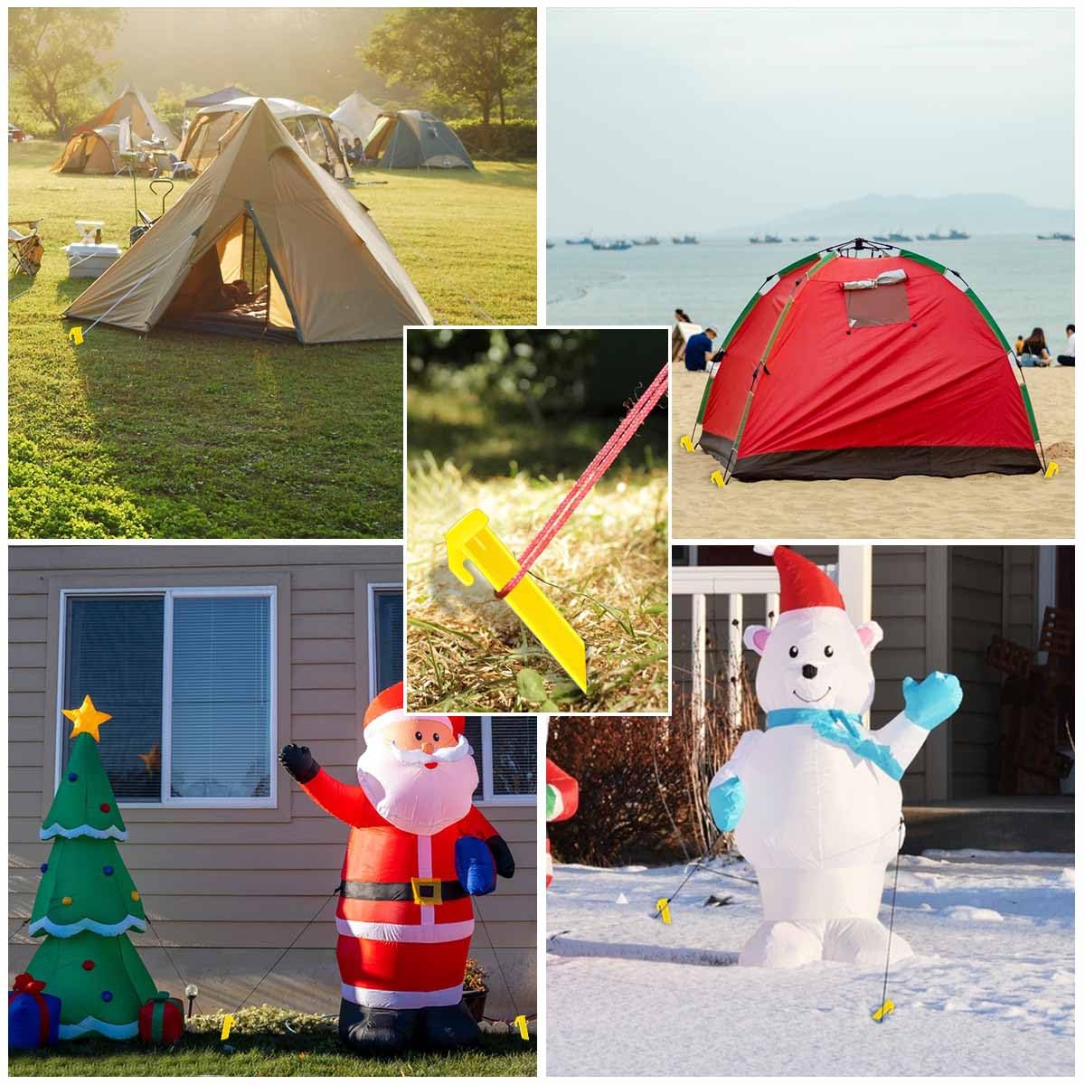 - 【Wide Application】This plastic tent stake has a wide range of uses, great for hiking and camping outdoors, which can be used for tents, canvas, rain tarp, canopy, gazebos, hammocks, hanging chairs, inflatable boats, and can also be used to maintain the position of inflatable Christmas decorations, bringing you a lot of convenience