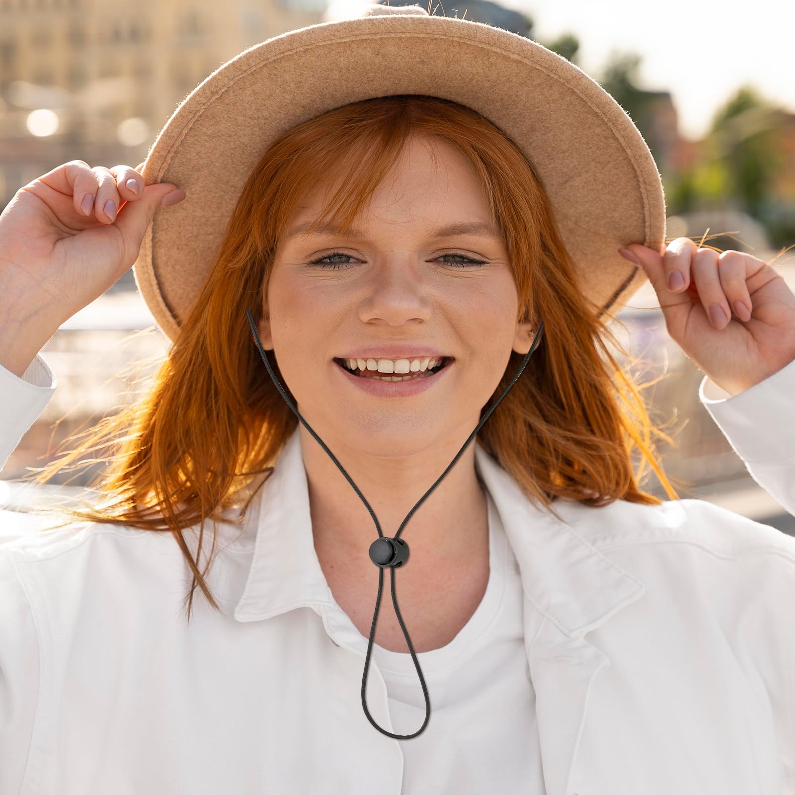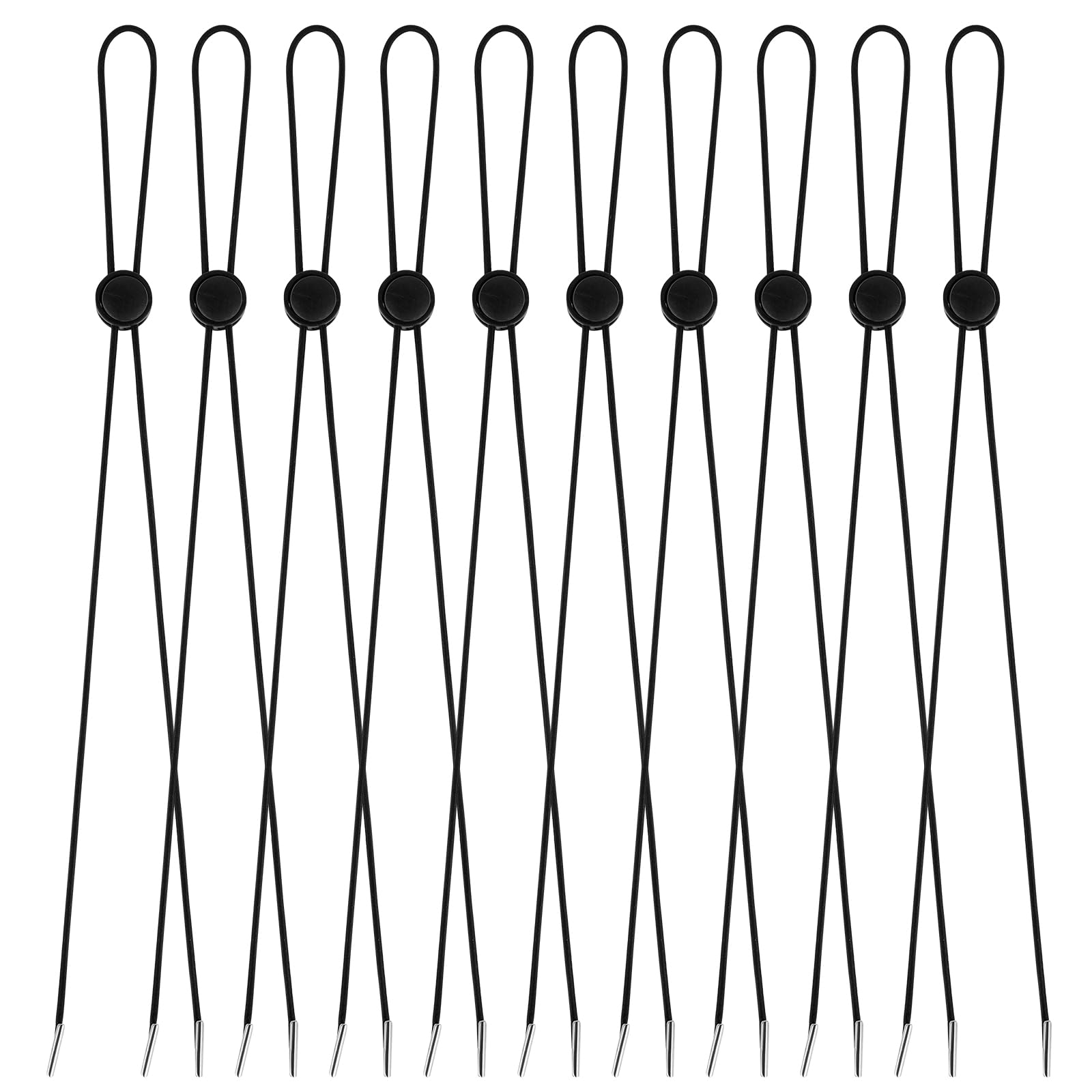 10 Pcs Flexible Hat Chin Cord, Adjustable Hat Strap Clips Elastic Hats Removable Chin Cord Anti-Lost Cap Strap Clips Fastener for Golfing Boating Fishing Hat Outdoor(Black)