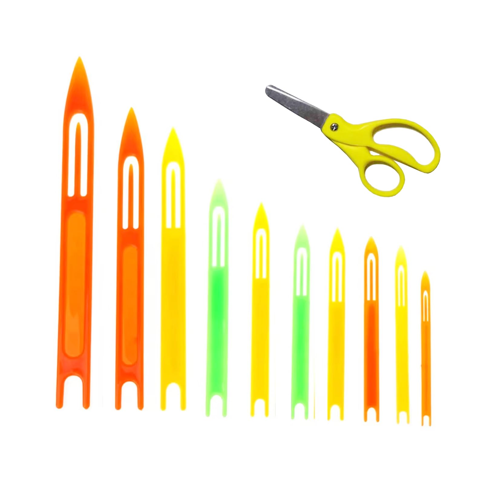 10 PCS Netting Needle Shuttles Fishing Net with a Pair of Scissors, Repair Line Equipment Plastic Cast Net Mending, Needle Shuttles Repair Tool, Used for Knitting and Sewing