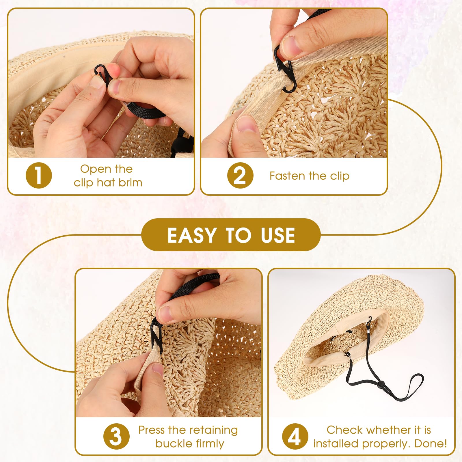 - 【Easy to use】When using these hat chin strap, you only need to clip the hat to the racks on both sides to fix it. After putting on the hat, you can adjust the windproof buckle to fix your hat more firmly on your head.