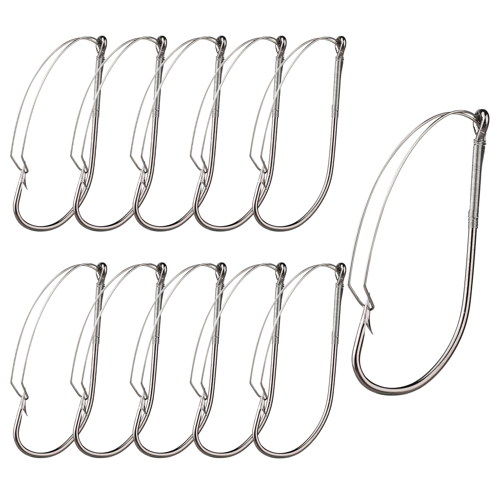 10 Pcs Weedless Wacky Rig Hooks Bass Fishing Hooks for Wacky Rigging Worm Lure Long Neck Hooks Anti-Hanging Bottom Mouthguard Fish Hook for Wacky Rigging Worm Lure 2/0
