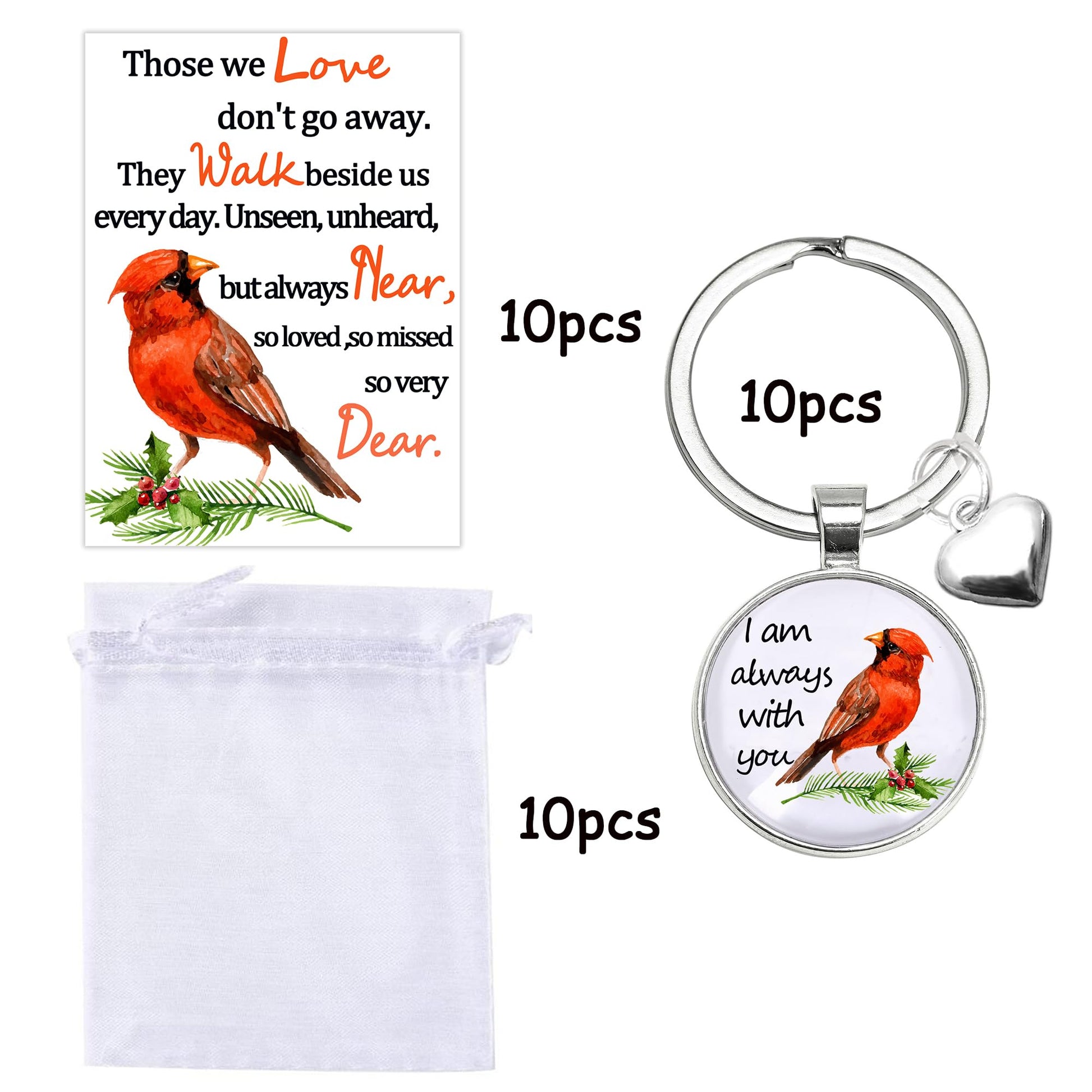 10 Set Cardinal Keychain Bulk Metal Red Bird Cardinal Key I Am with You Always Poem Cards White Organza Bags Funeral Gifts Grief Gifts Sympathy Gifts for Condolence Remembrance Bereavement