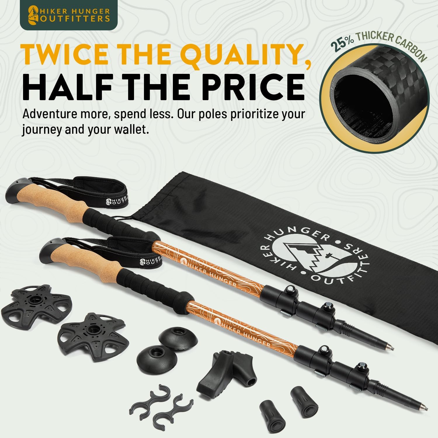 - Added Comfort: We use moisture-wicking ergonomic cork grips that conform to your hand shape for the ultimate fit! A nonslip EVA Foam Grip extension under the cork grip for quick use on steep climbs! And neoprene padded hand straps to avoid chafing.
