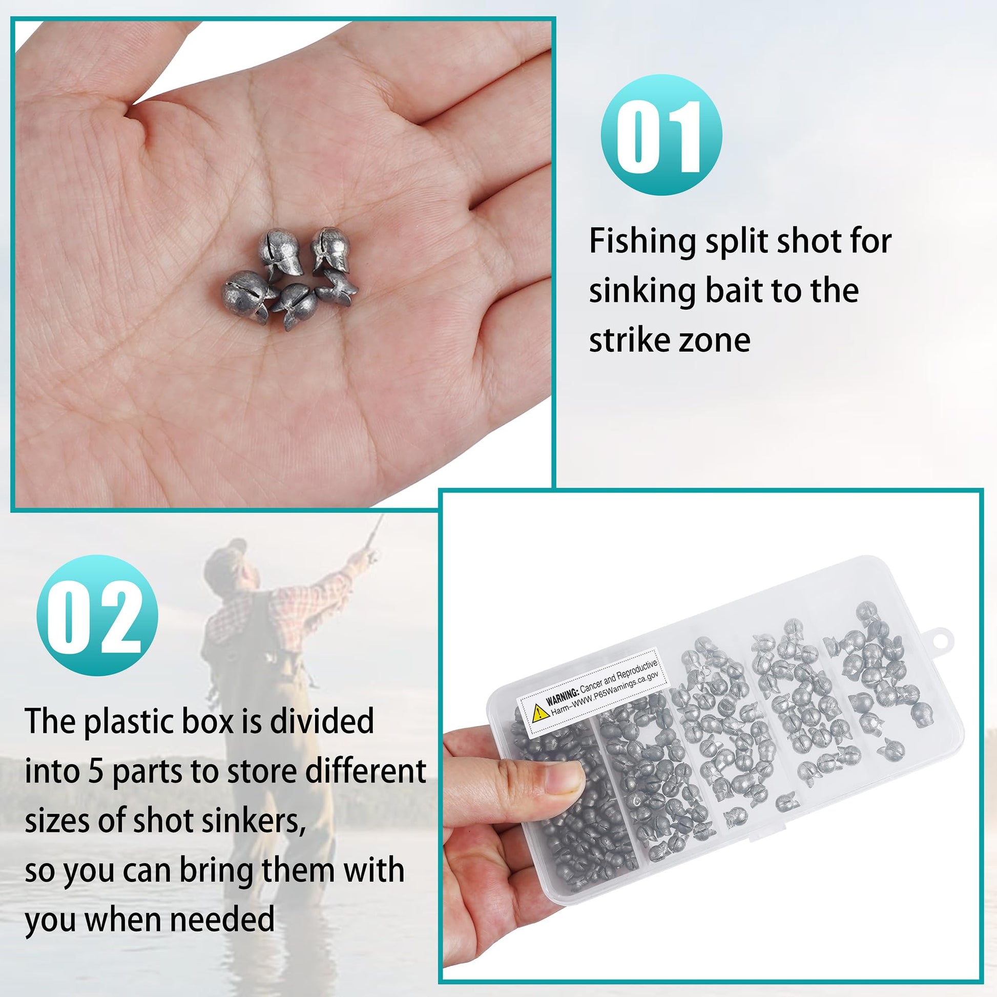 - Unique Design - These split shot sinker designed with split shot shape,which making it convenient for you to put the fishing line into the sinker and won't hurt the fishing line
