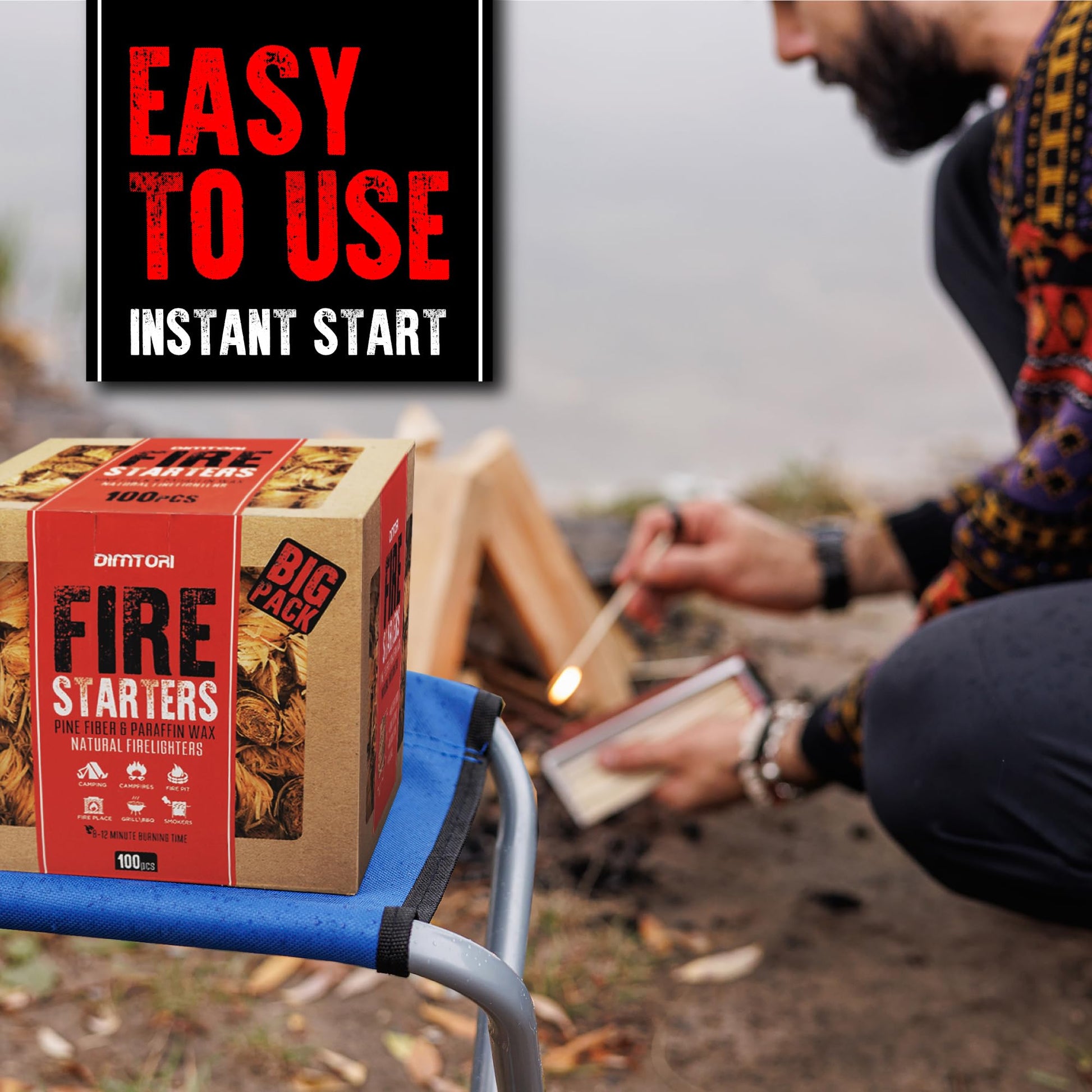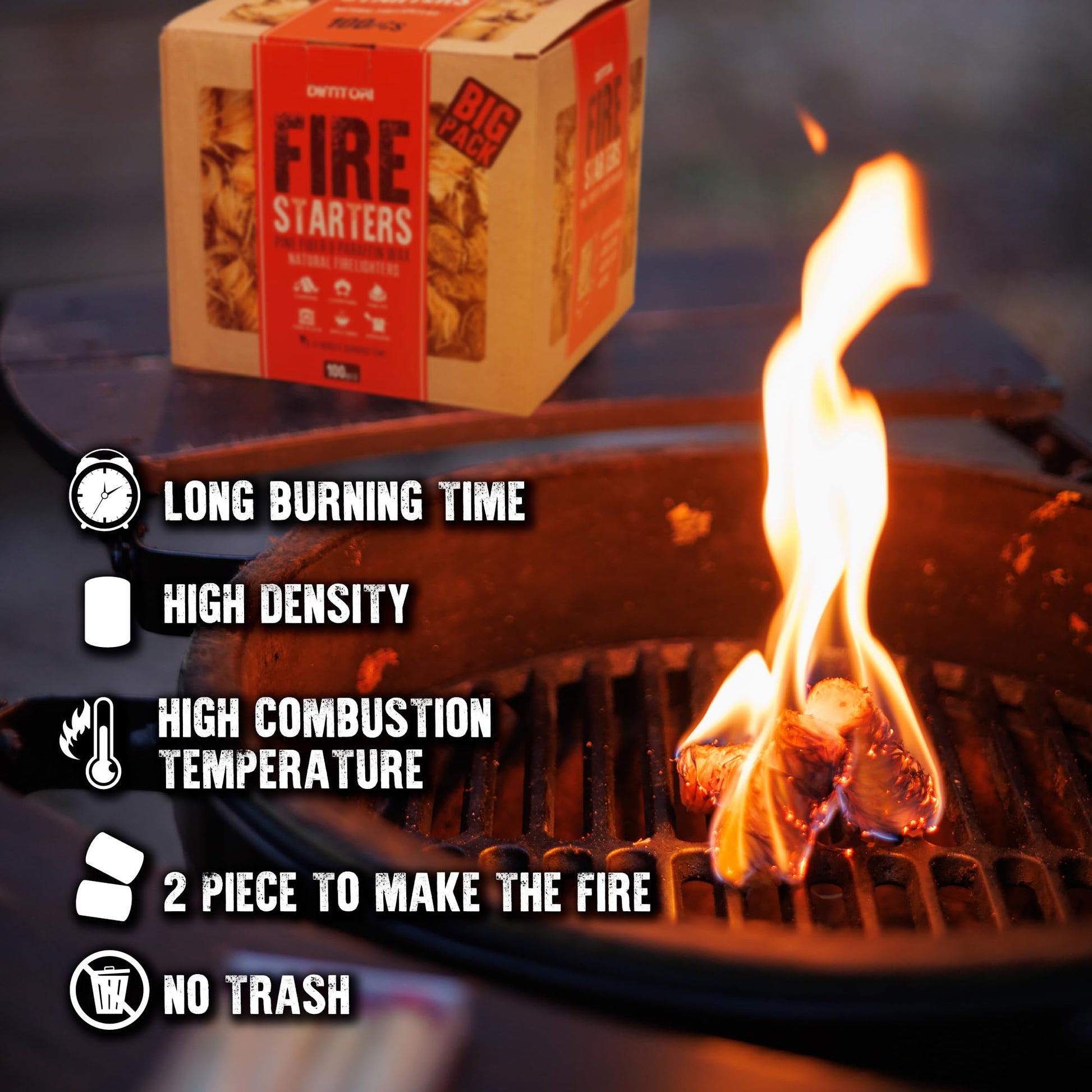 100 pcs Fire Starter for Indoor and Outdoor Use - Natural, Eco-Friendly Firelighter for Grills, Smokers, Fire Pits, Wood Stoves - Waterproof, All-Weather Charcoal Starter, Fire Starters for Campfires