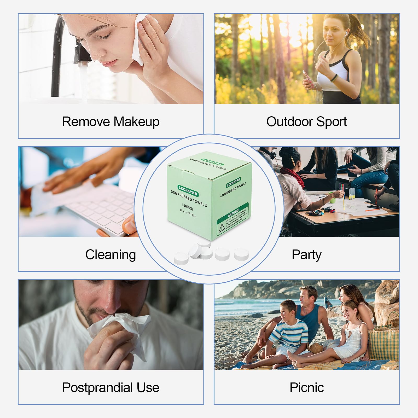 100 PCS Portable Compressed Towel Tablets, Compressed Hand Wipe Coin Paper Towel, Camping Wet Towel, Disposable Towel for Travelling, For Home Beauty Outdoor Sports