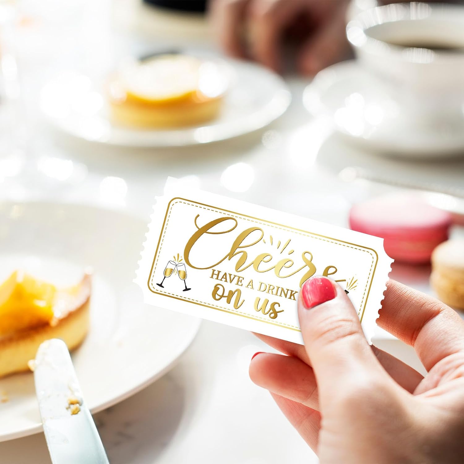 - Considerate Design: Our drink tickets roll which feature a lovely image of four cocktail glasses and the words "enjoy a drink on us", are delicate designed,clear and eye-catching to give guests a great experience at the event.