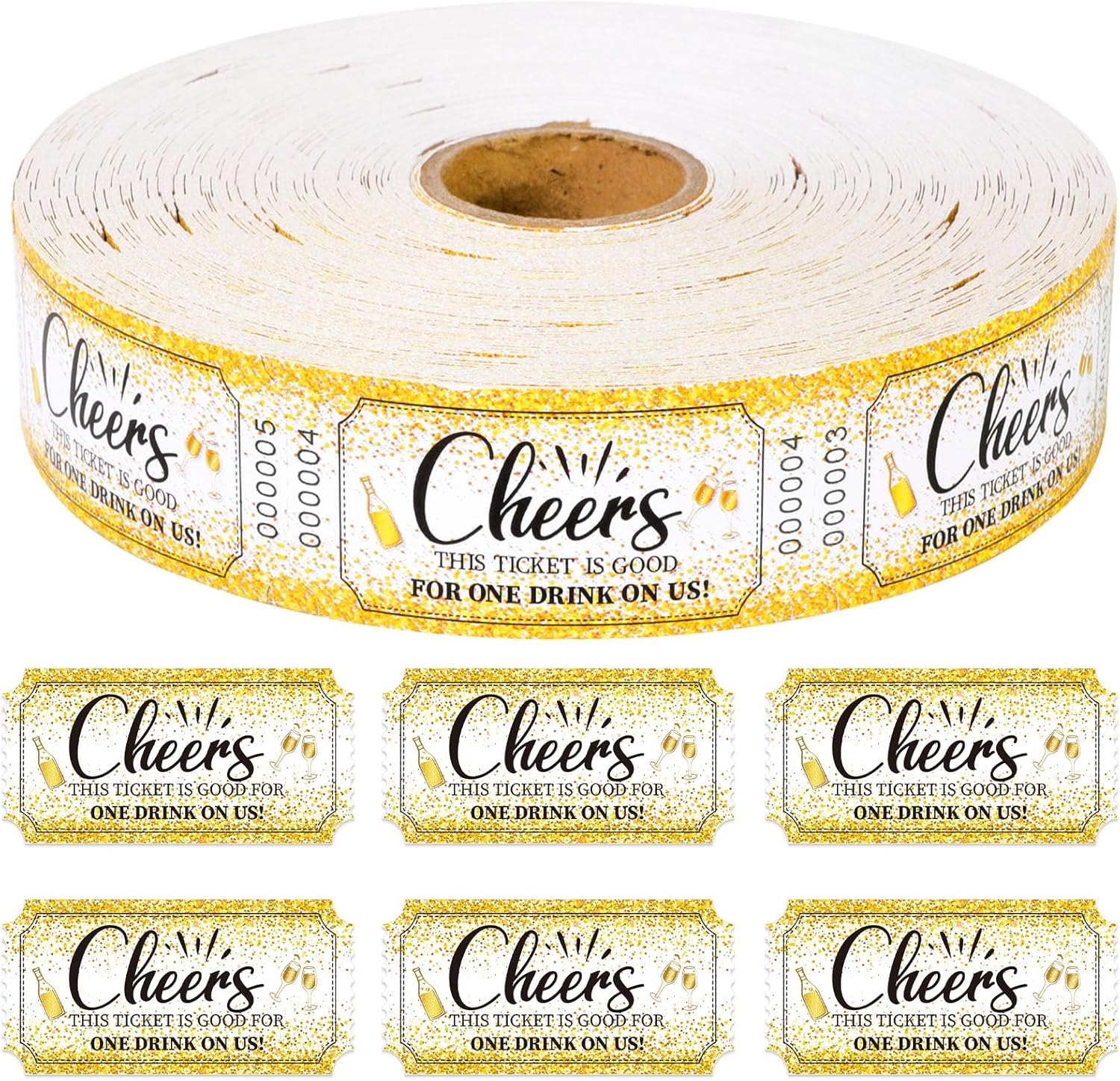 1000 Pcs Drink Ticket Single Raffle Tickets Roll Cocktail Design Free Drink Ticket for Events Wedding Work Formal Parties Leisure Class Reward