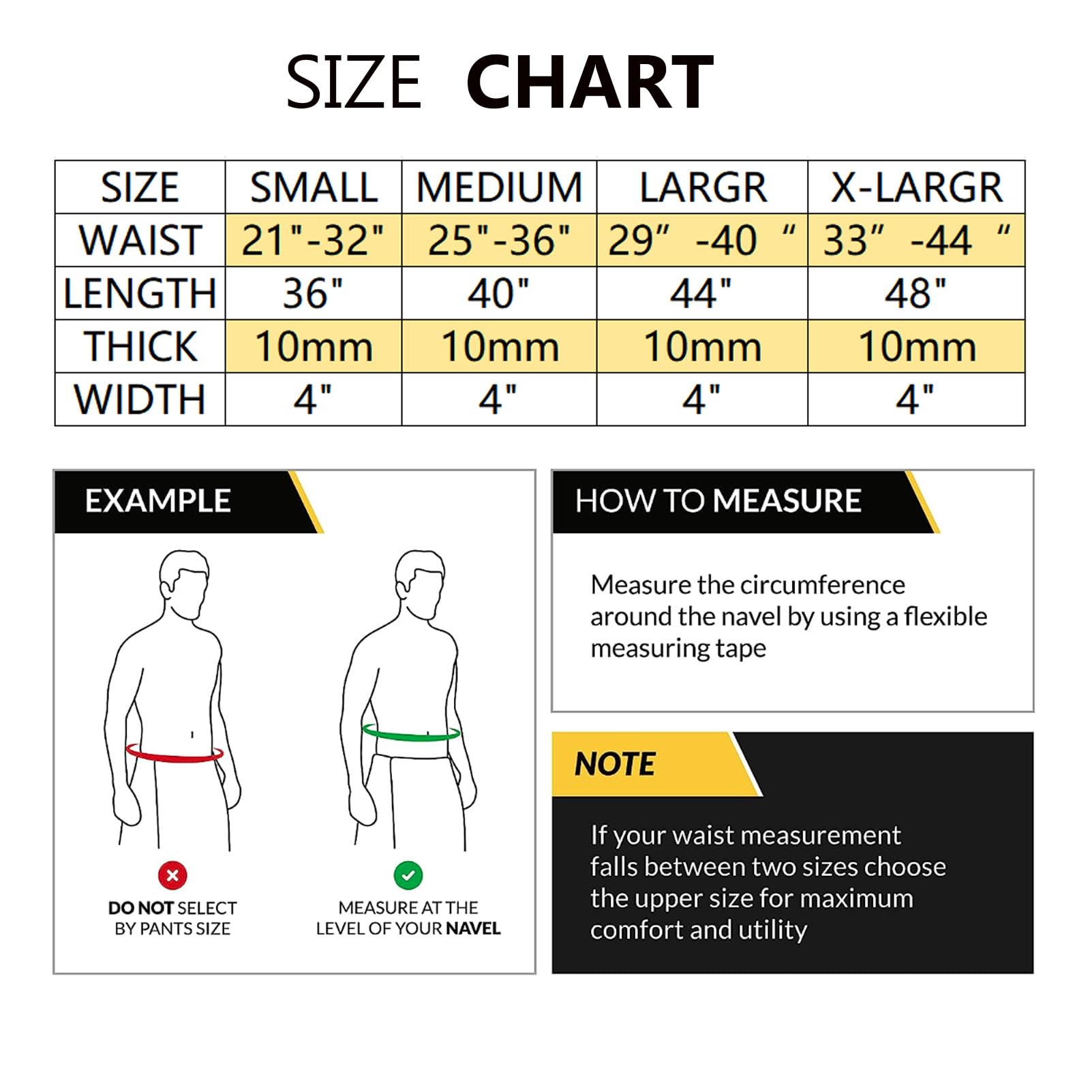 - Adjustable Size: Our lifting belts for men and women have ten precision spaced holes. Using the lever buckle, you can adjust the size of this professional-style weight lifting belt to fit your waist. Once buckled, it won't slip or slide from its position.