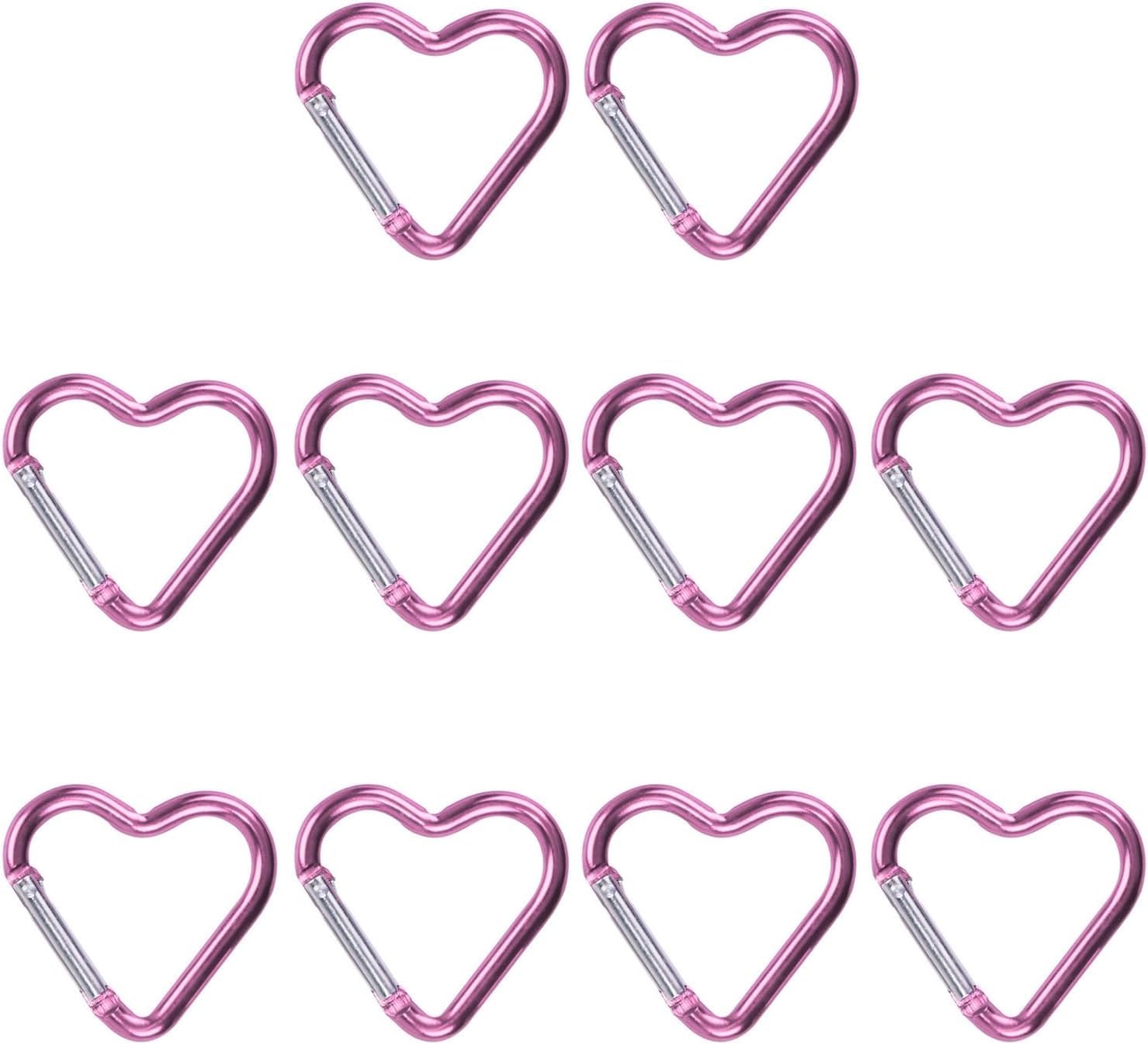 10Pcs Pink Heart-Shaped Carabiner Hooks Strong Load-Bearing Quick Link Key Holders Aluminum Material Creative Shape High Durability Camping Buckles, Accessory and Keychain Carabiners