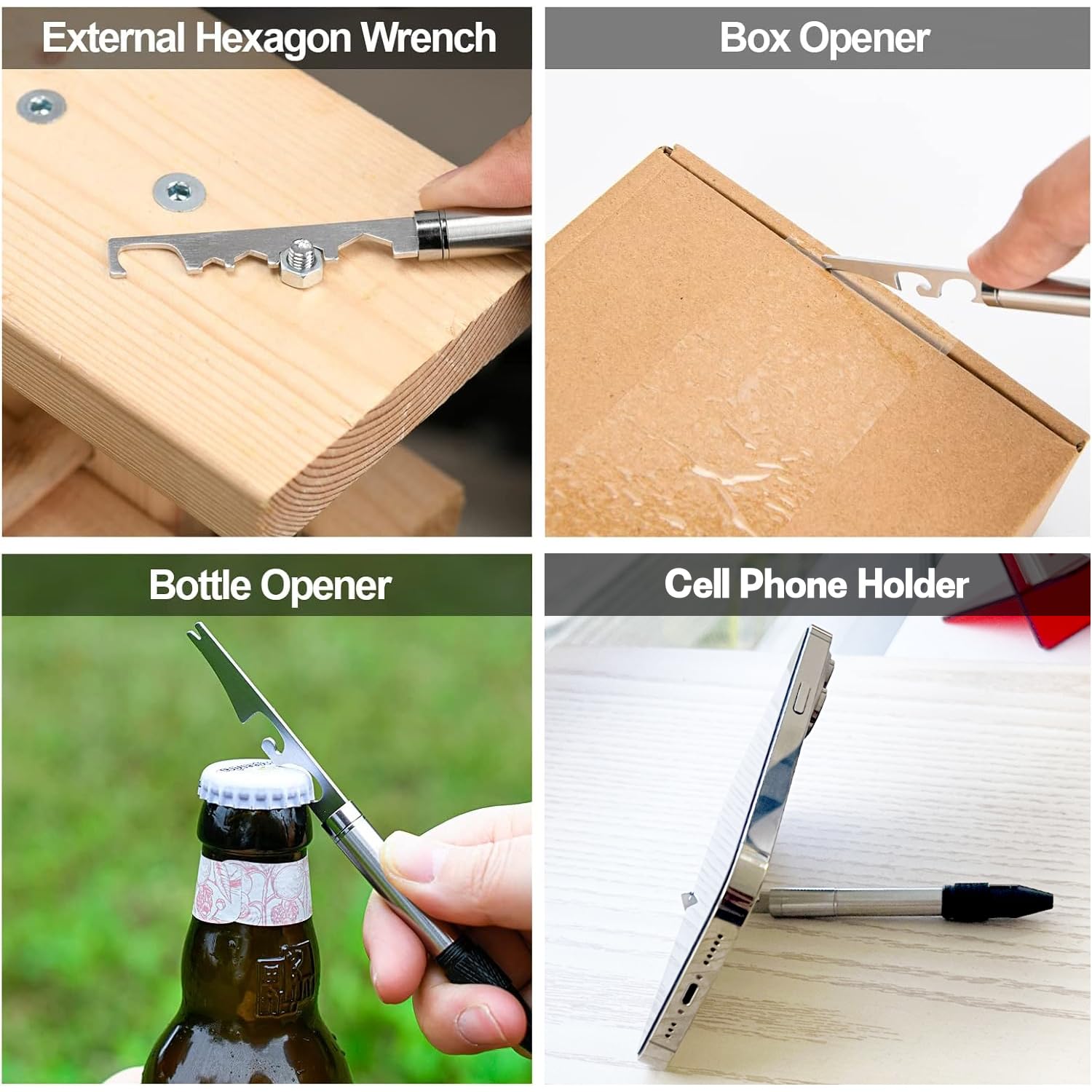 - 【Best Gift for Men】—If you want a satisfying gift for men, the multi-tool pen is a perfect gift for dad, men, husband, boyfriend, grandpa on Father's Day, anniversary, birthday, Thanksgiving and other unforgettable days Unique gift. Anyone who receives a multifunctional pen as a gift will love it! Excellent men's construction work accessories.