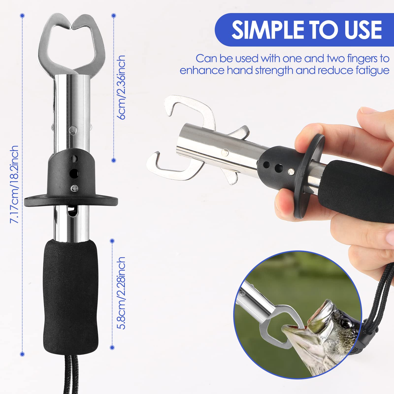 - POWERFUL FISH LIP GRIPPER - Fish lip gripper device can be operated with one hand, wide opening for easy grip handle and quick release lever, making it easier to catch fish. Stainless steel construction is ideal for both freshwater and harsh saltwater environments.