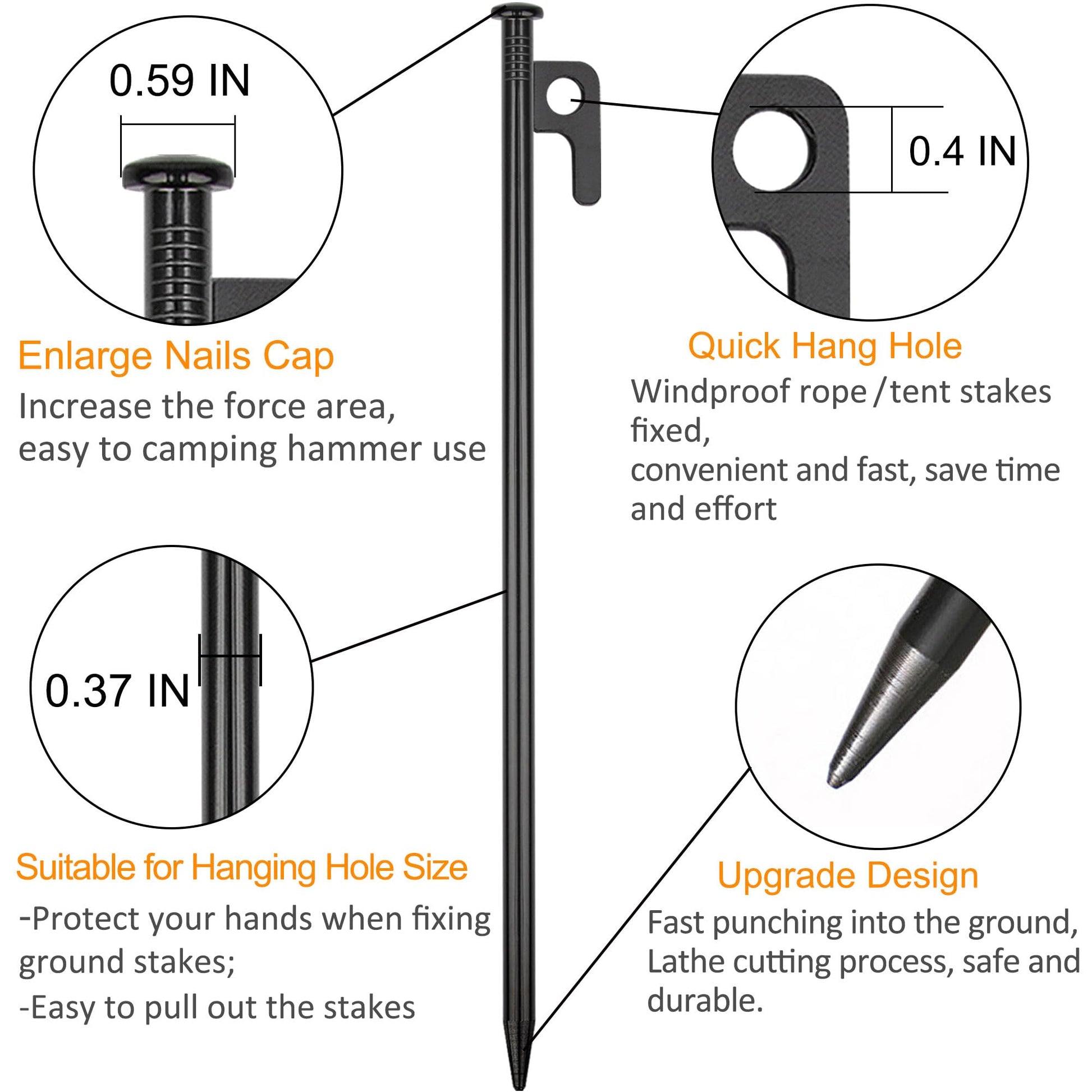 - Upgraded Heavy Duty Camping Stakes: Made of high-quality forged S45C steel, completely get rid of the snapping and bending, more durability, they are corrosion resistance.