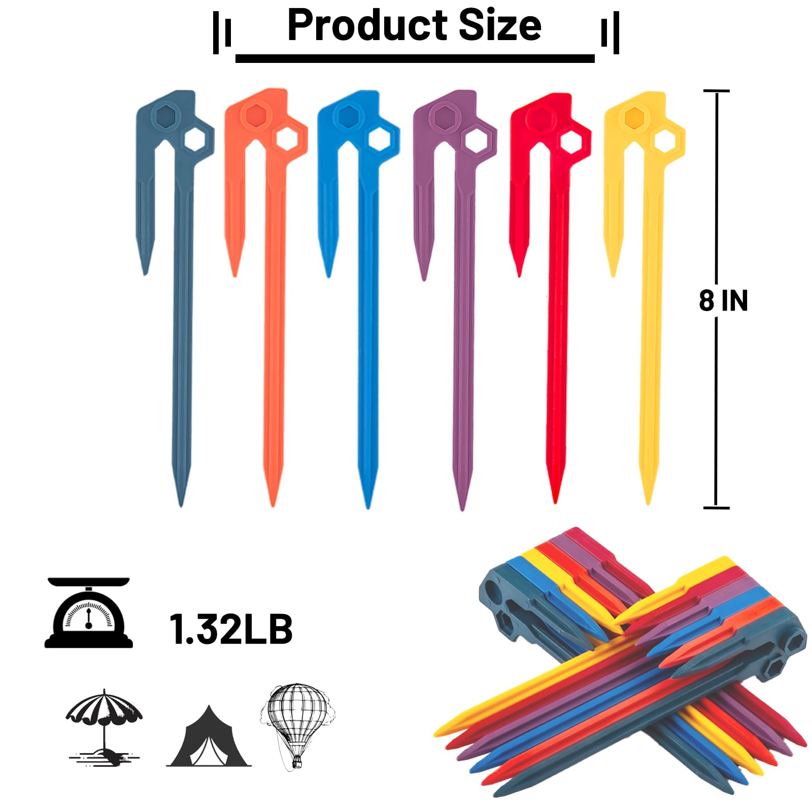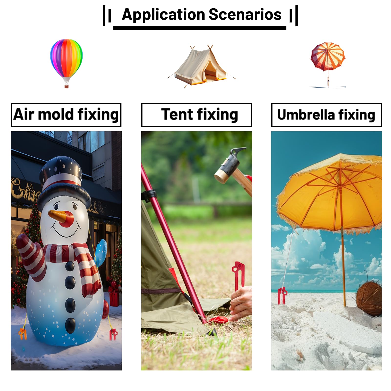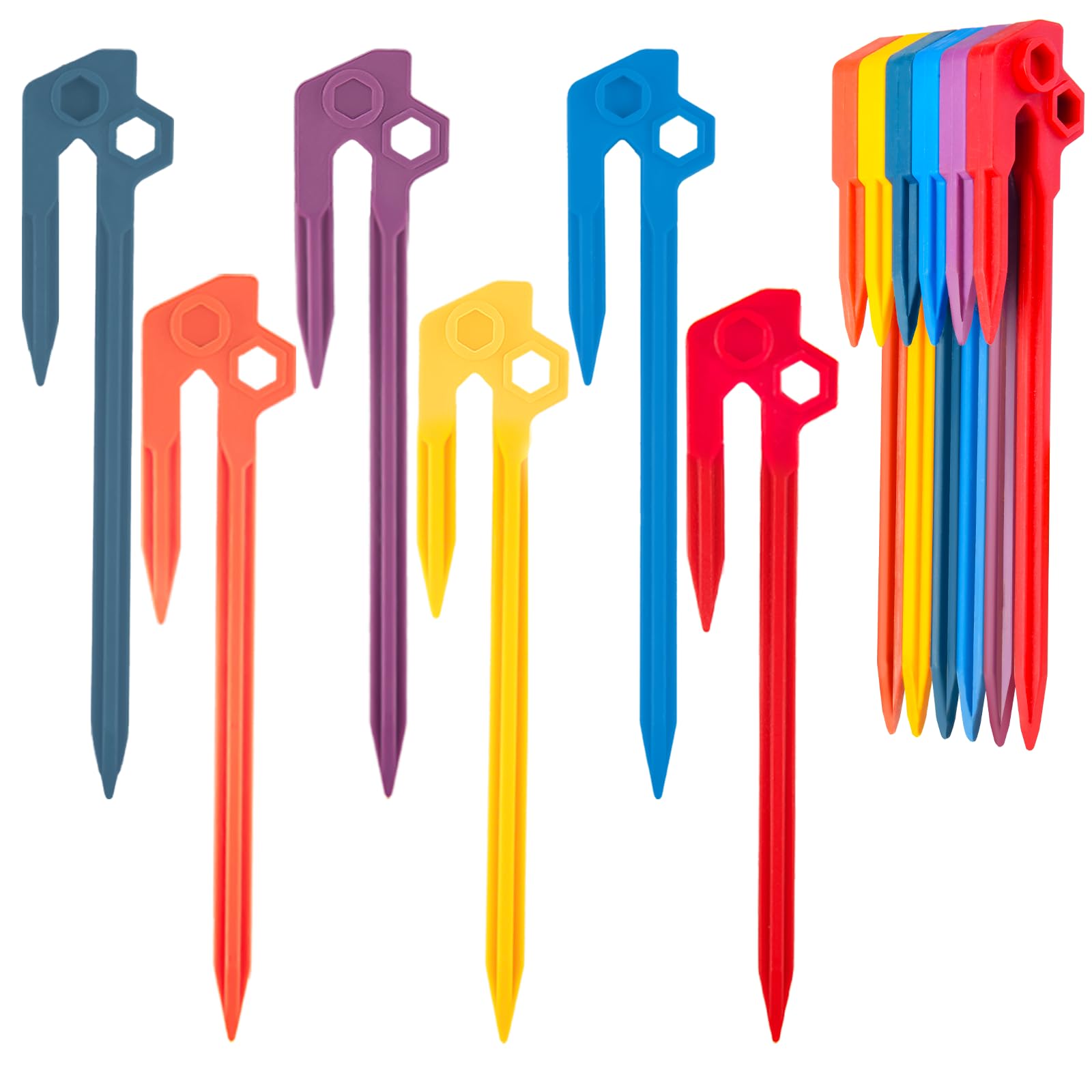 - WIDE USES: Tent pegs are suitable for multiple occasions and festivals, they are very useful for fixing tents, canopies and other outdoor equipment, in addition to fixing festival air models, trampolines or large balloons, and the wide range of colours makes it blend into the environment better.