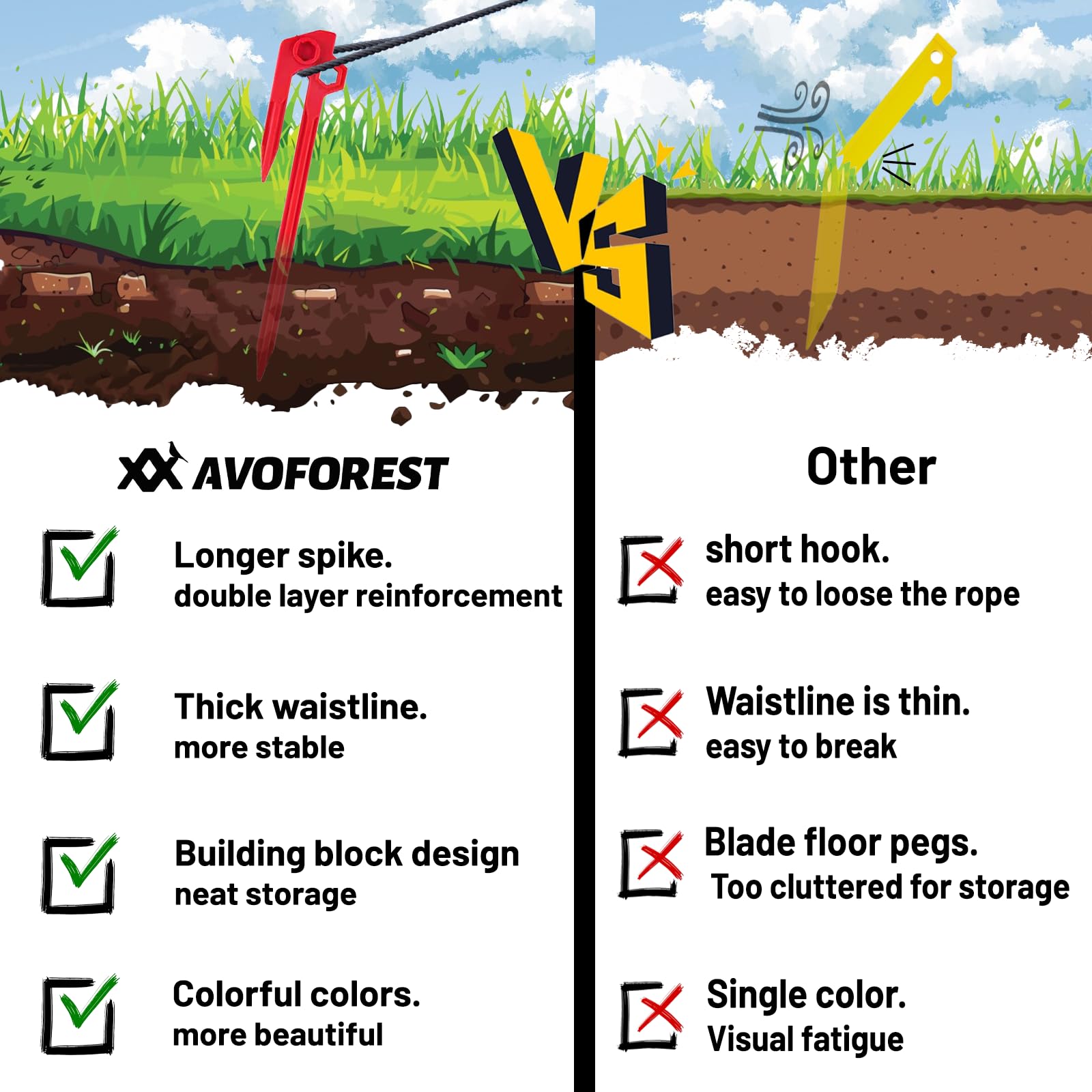 - SERVICE UPGRADE: While we are confident in our camp stakes, if you have any questions about the product, pm us, we are online 24 hours a day, AVOFOREST offers a lifetime warranty about the product.