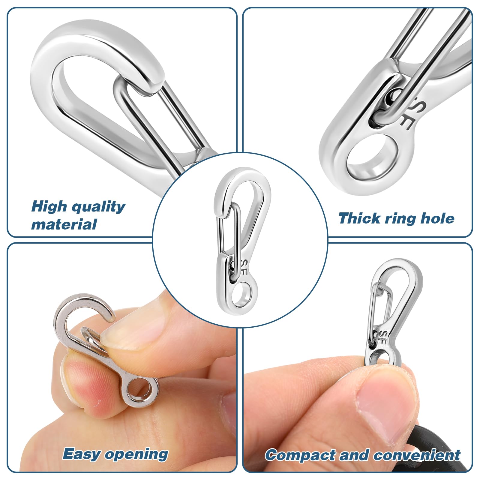 - 【High-Quality Material】This carabiner clip is made of high-quality stainless steel and has a built-in high-elastic spring. It is durable, easy to use, will not deform or break at will, and can be used for a long time.