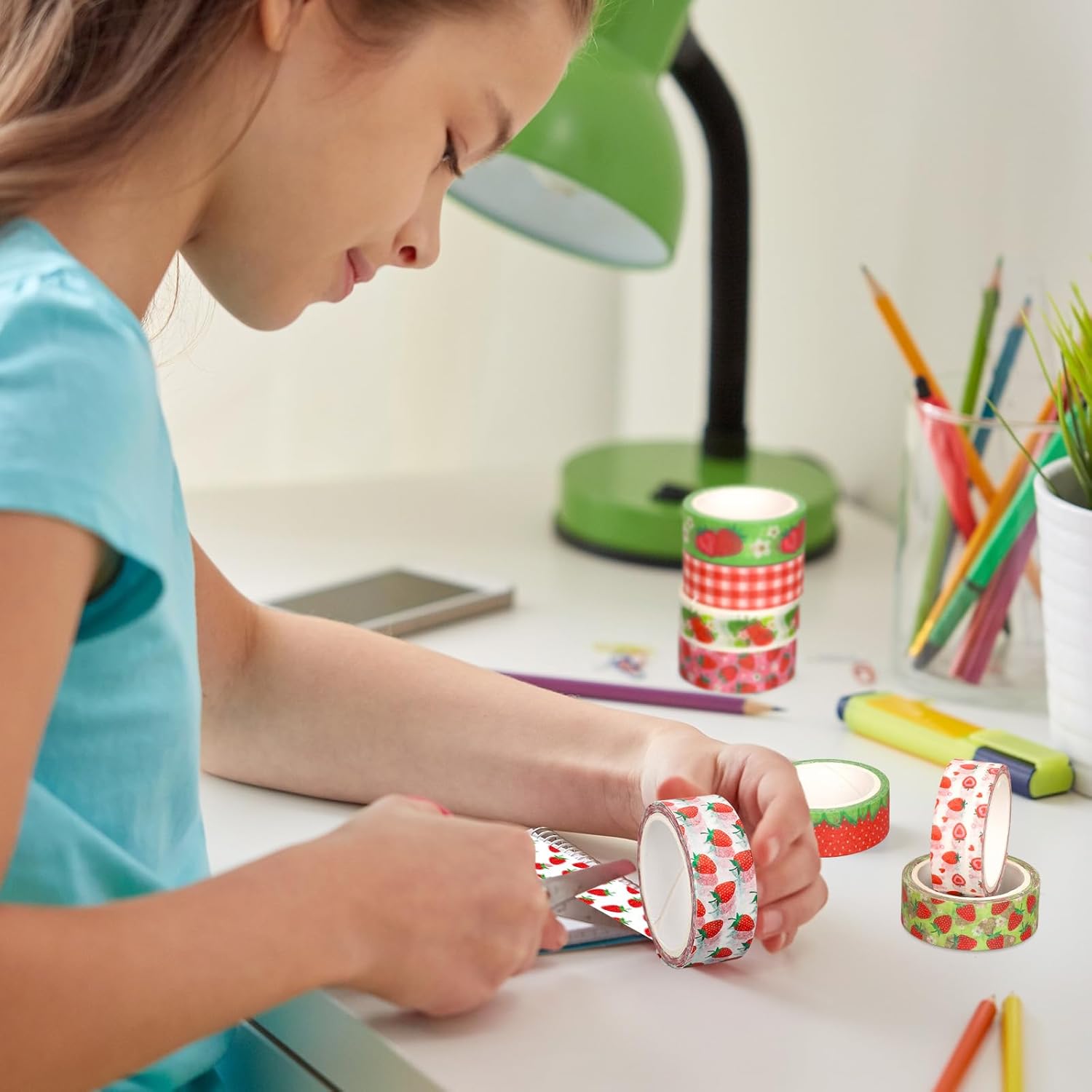 - WIDE APPLICATIONS: Our strawberry washi tape can be applied in various occasions, great for decorations of cardboard, journal and scrapbook, suitable for birthday, baby shower, summer holidays, fruit party, etc., ideal for sticking photos on the walls or as masking tape for painting