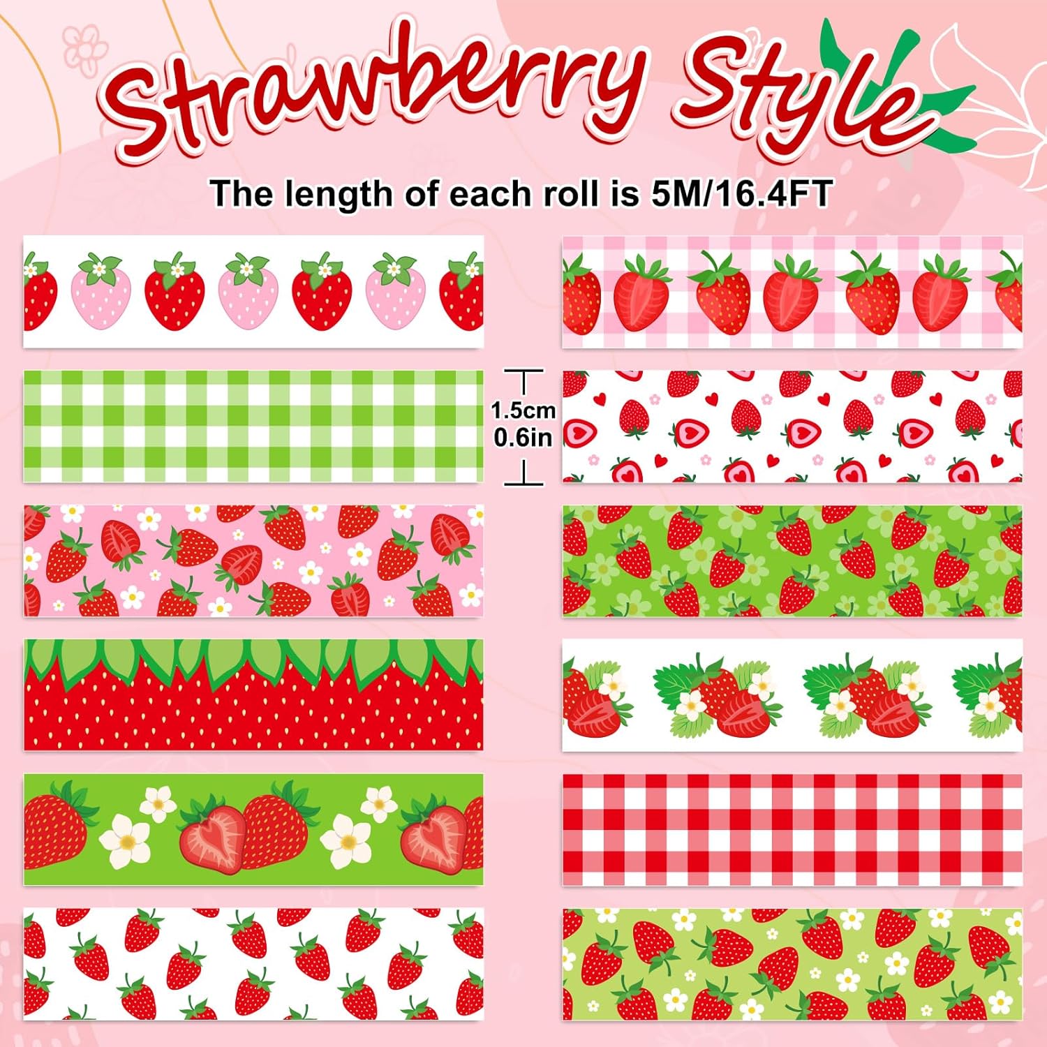 - THE PACKAGE INCLUDES: 12 rolls of strawberry theme washi tapes in different designs, they will offer enough quantity and rich styles to you for crafts and wrapping