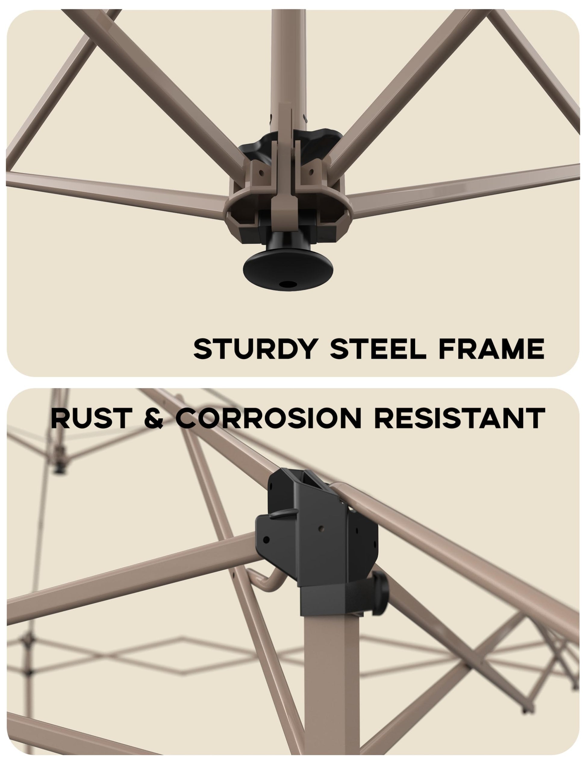 - Sturdy & Durable Frame: This 12x12 ft pop-up gazebo features a powder-coated metal frame, rust and corrosion-resistant, with a 150D Oxford fabric canopy providing UPF 50+ UV protection.