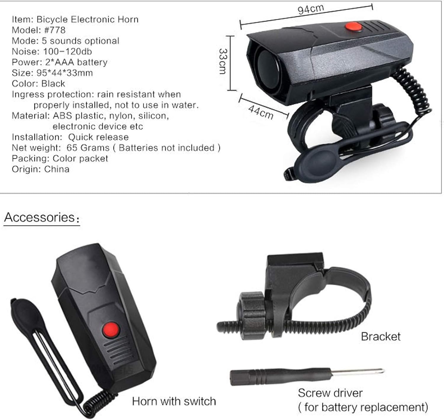 - Ergonomic control design - Separate control switch mounts within thumb's reach for effortless operation. Keep both hands firmly on the handlebars while activating the horn for safer cycling experience.