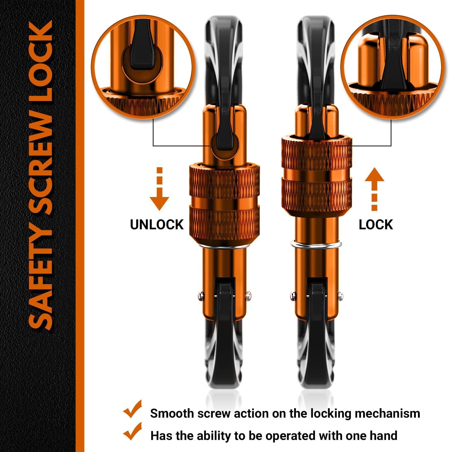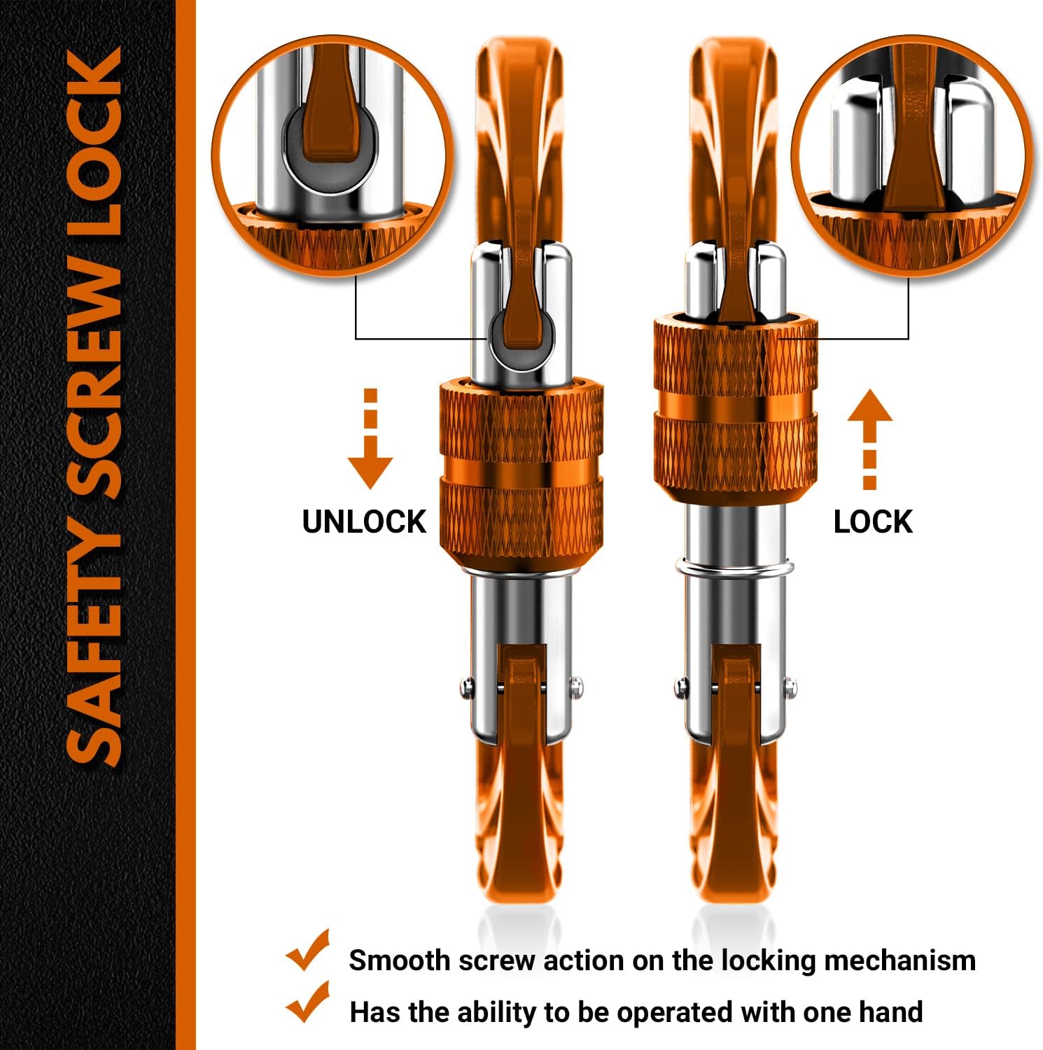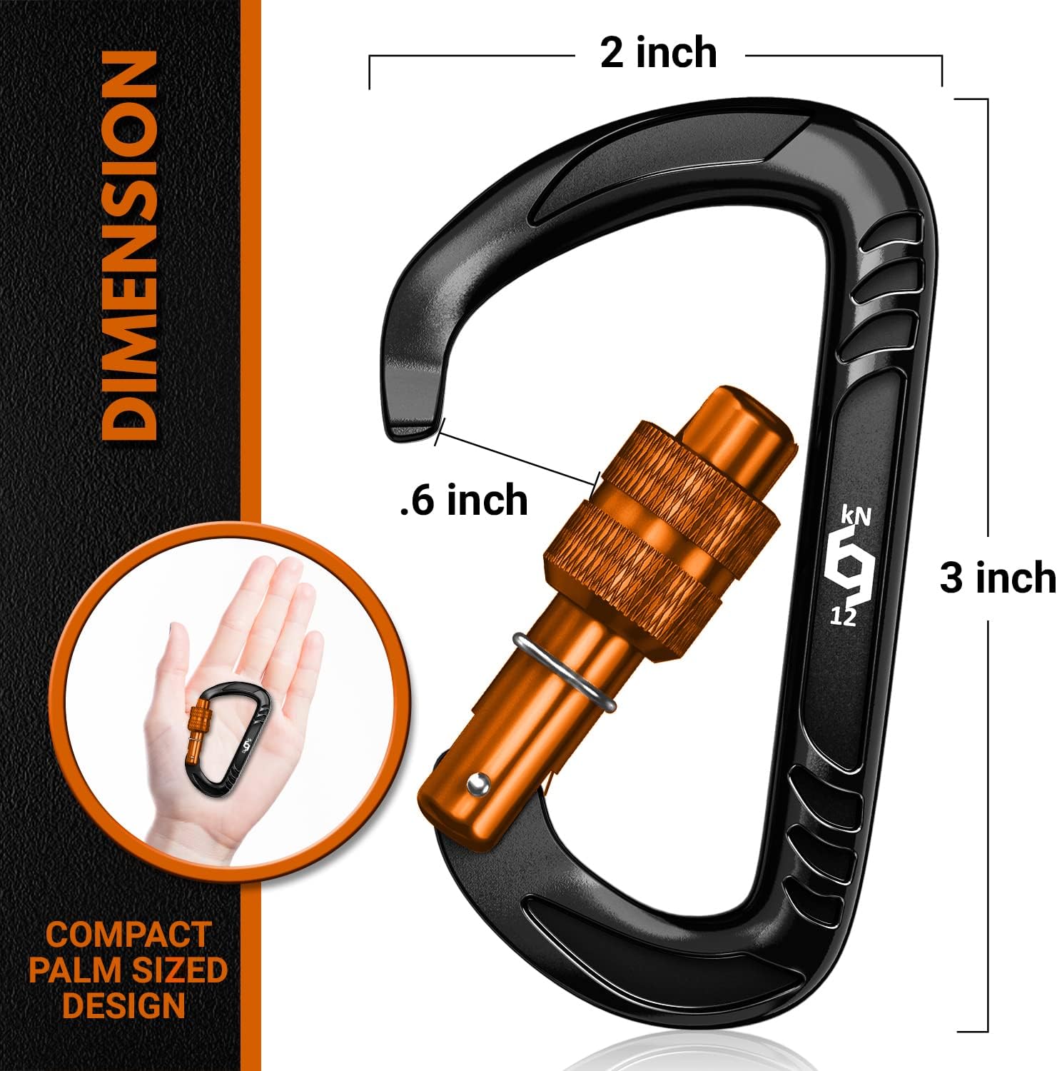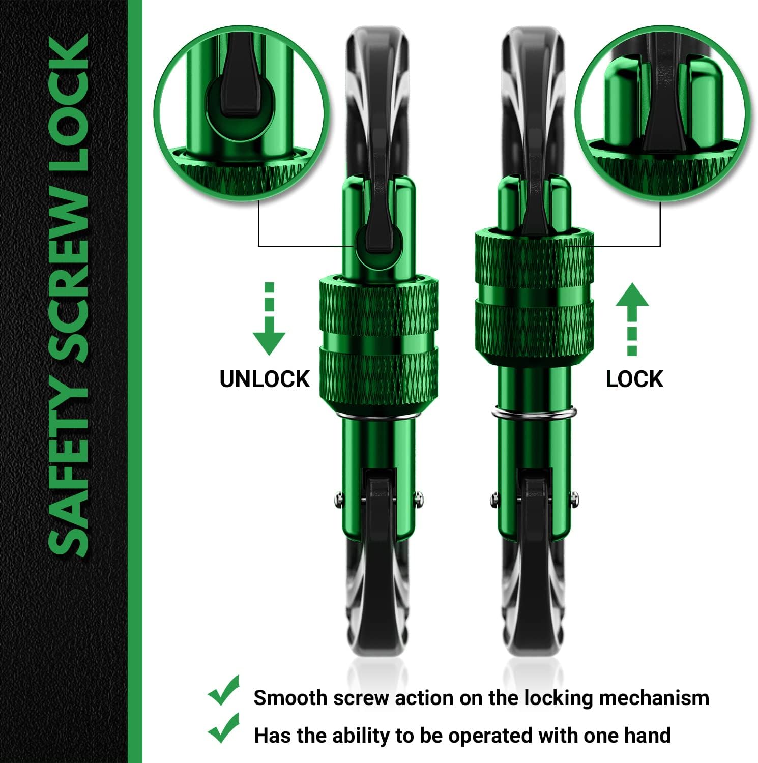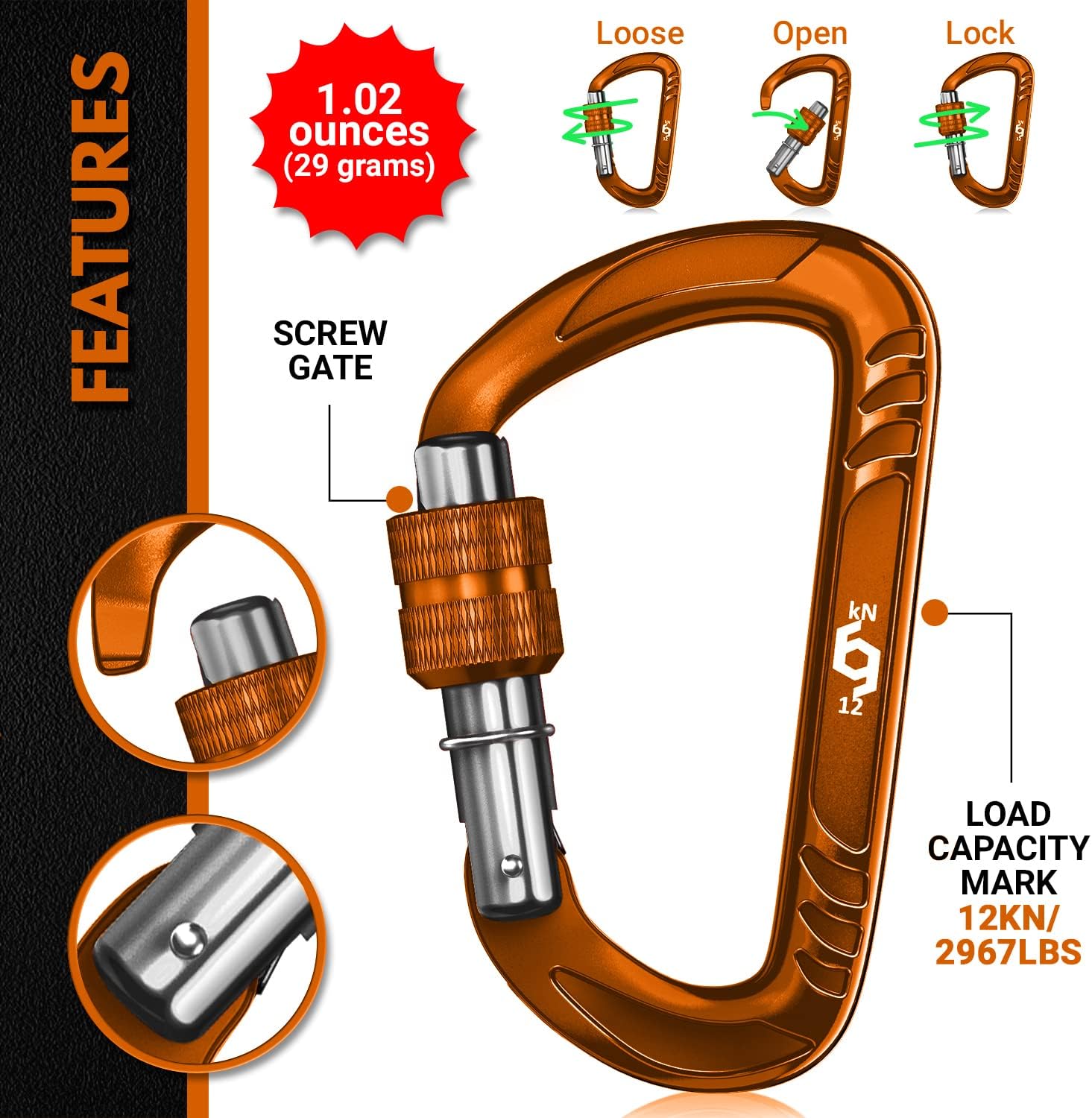 - 【Multi Purpose】 Rhino locking Carabineers are suitable for: hammock, camping, fishing, hiking, backpack, paddle, traveling, swing, punching bag, dog leash, attach sports bottles, yeti sling, keychain, travel tools, fix heavy object on a pickup truck, backpack clips for kids, keychain for women, bag hook, snap hooks, key clip for men, accessory & keychain carabiners, gear ties, toy grappling hook, cable machine accessories, key holder, d ring, boxing bag. Not For Climbing.