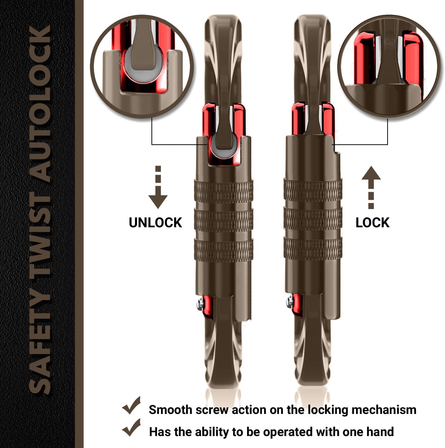 - 【Compact Design】 Super lightweight carabiner clips with compact palm-sized design to give the ability to be operated with one hand and everday carry.