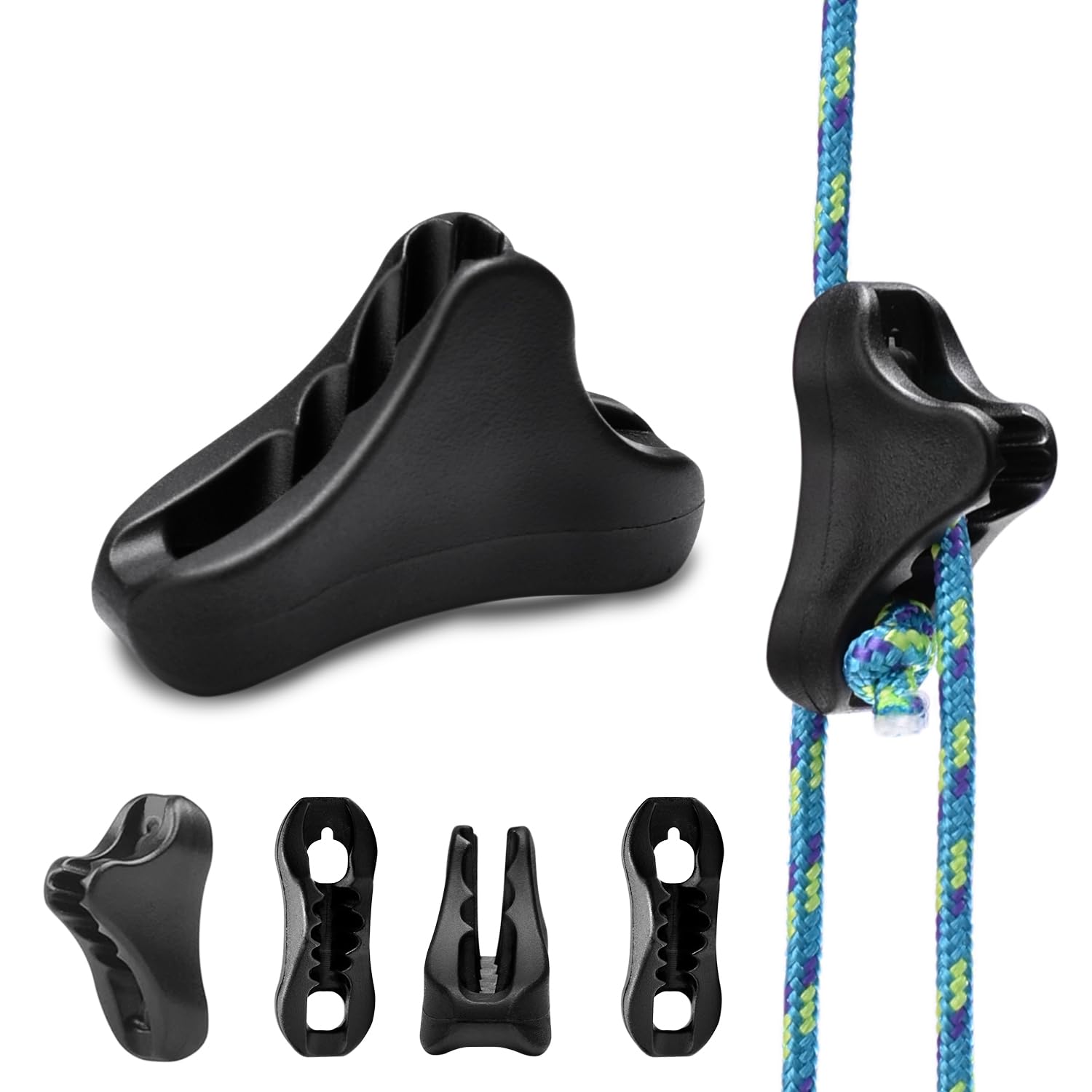 - FUNCTIONAL DESIGN:Accepts cordage and guyline from 3mm to 5mm. the novelty design of guyline cord adjusters can be applied in wide fields.Manufactured without any sharp edges eaier to use than other rope adjuster.Quicker and easier than a knot, it will not slip or jam.