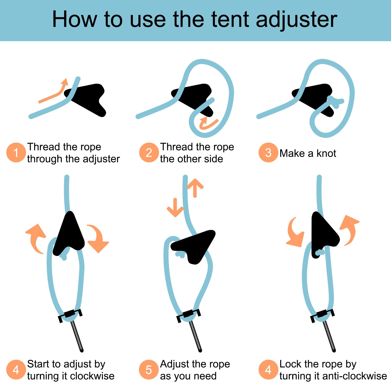 - EXTENSIVE APPLICATIONS: Rope adjusters are suitable for tarps, tents, awnings, lean-to shelters, etc. Easy to bind objects properly at outdoors or indoors.