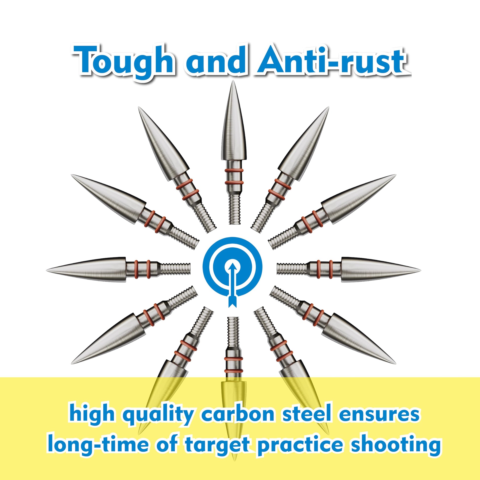 - [WIDE APPLICATION ] Various sizes and weights meet different arrows/bows. Unleash your archery skills with our stainless steel arrow tips today and dominate the archery range with confidence.