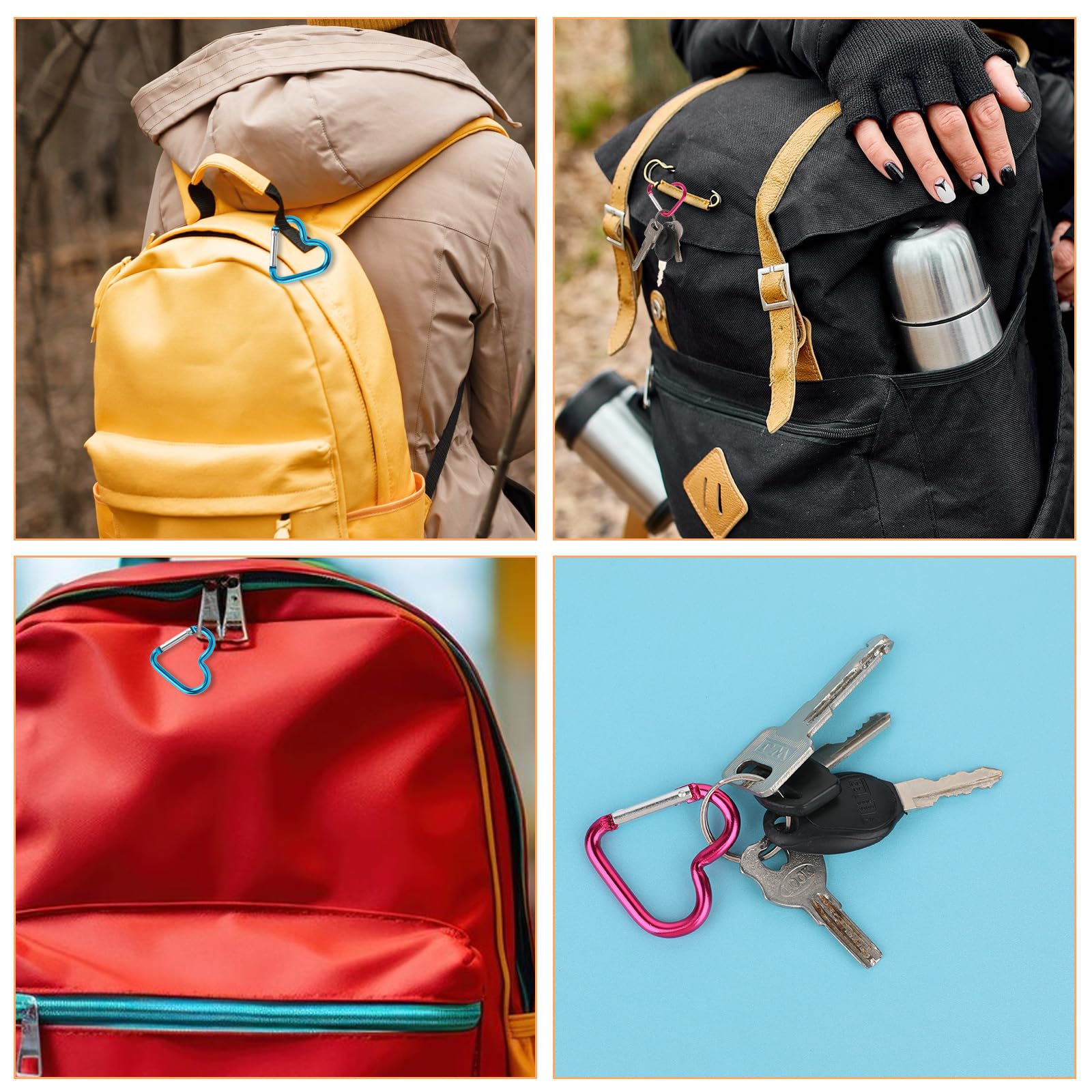 - Versatility: The heart-shaped small carabiner clips are not only suitable for outdoor activities such as hiking and camping but also ideal for securing keys,water bottles,camping gear,and more. They are a great choice for backpackers and outdoor enthusiasts.