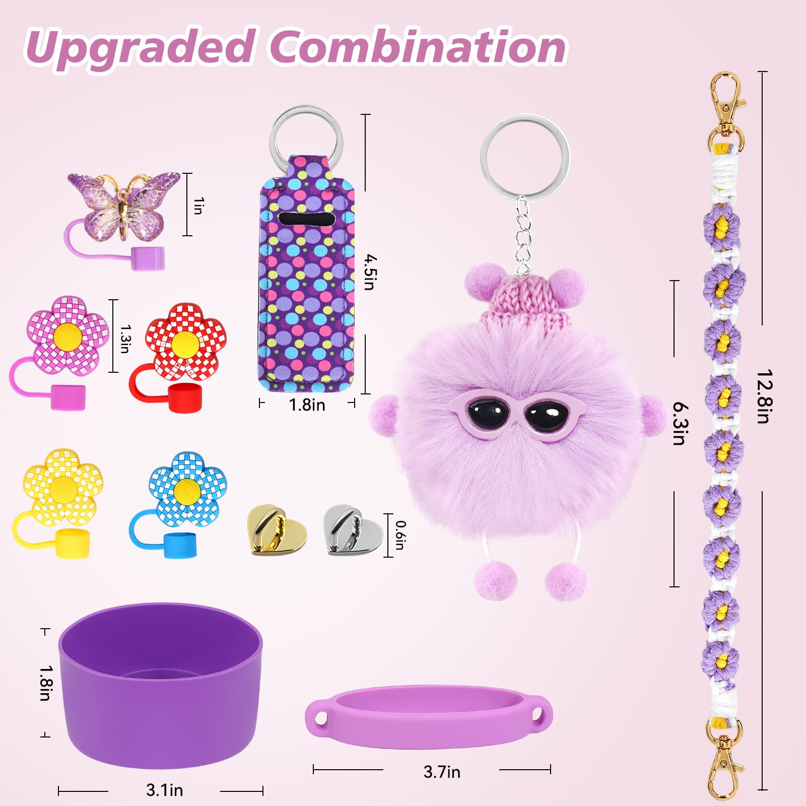 12PCS Stanley Cup Accessories Set,Decoration, Include Water Bottle Handle Strap, Boot, Straw Cover, Chapstick Holder, Charm for Stanley Cup 40oz30oz Tumbler,Purple