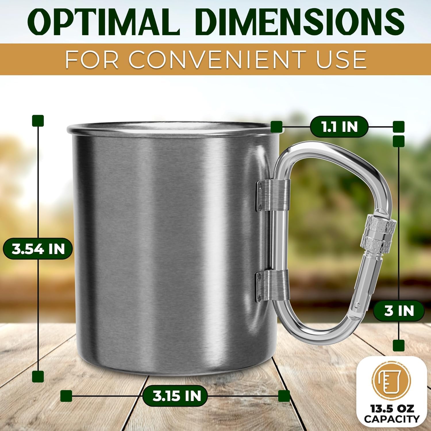 13.5 Oz Stainless Steel Camping Mug with Carabiner - Metal Camping Cup for Traveling, Lightweight and Heat-Resistant, Durable and Easy to Clean Hiking Cup, Comfortable to Hold and Drink