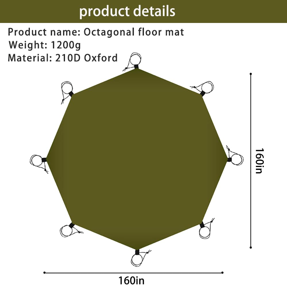 - Large Area: The effective use area of the square tent floor mat is 85x85 in for 2-3 people. The effective use area of the octagonal tent floor mat is 160x160 in, suitable for 6-8 people. The effective use area of the hexagonal tent floor mat is 125x115 in, suitable for 4-6 people