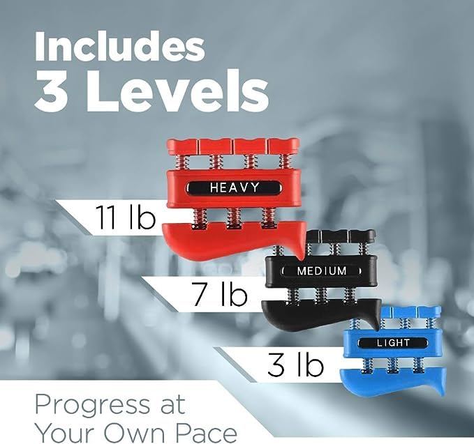 - 13 Piece Set: A perfect hand trainer grip therapy workout set for Athletes and Musicians Our any one who wants to build up hand and finger strength, this finger strengthener set comes complete with an Adjustable Hand Grip, 3 Finger Stretcher Bands, 3 Grip Rings, 3 Egg Grip Ball and Finger Grip Exerciser.