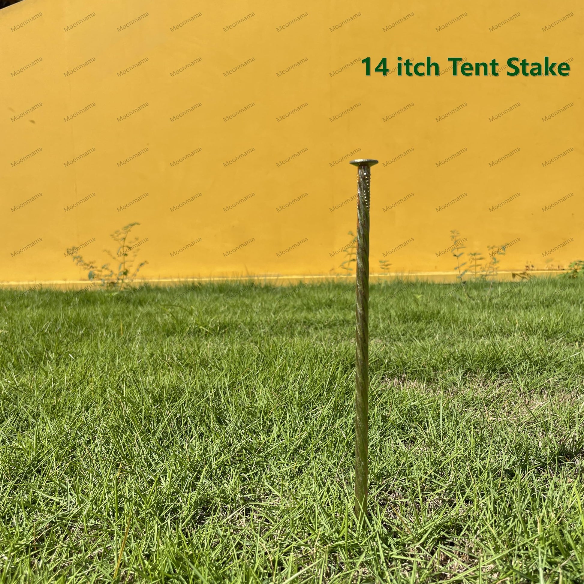 14-inch Galvanized Super Long Steel Nails for Wooden Piles Grass Floor Landscape Metal Yellow Nails Rust-Proof Extension Reinforcement Tent Camping Garden Anchor (20PCS)