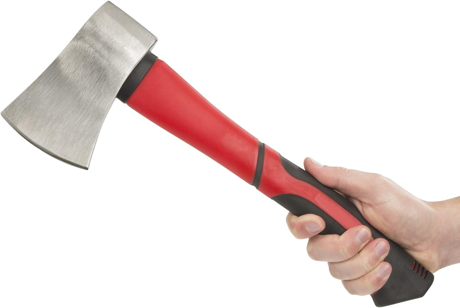 EFFICERE 14-Inch 20-Ounce Camp Axe and Survival Hatchet is a re-engineered and refined classic. Featuring a 20 ounce head weight and 14 inch overall length with perfect balance and power-to-weight ratio, this axe is your perfect choice to chop something for your outdoor activities. Constructed from hardened and forged alloy steel for dependable strength, the head is permanently and securely assembled to handle with epoxy that will never loosen over time. Our unique high-frequency heat treatment and precise grinding process insure the sharpness and durability of cutting edge for excellent cutting performance. You will love the specially designed anti-shock and anti-slip fiberglass handle with soft rubber grip that gives you the maximum comfort and control during use.