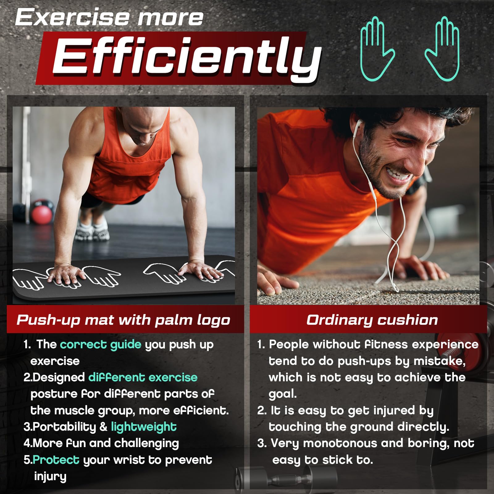 - Target Specific Muscle Groups: thanks to the surface printed handprints, this push up mat guides you to target and train specific muscle groups for a tailored workout; With each handprint designed for stimulating different muscle groups, this mat promotes correct posture and adds safety