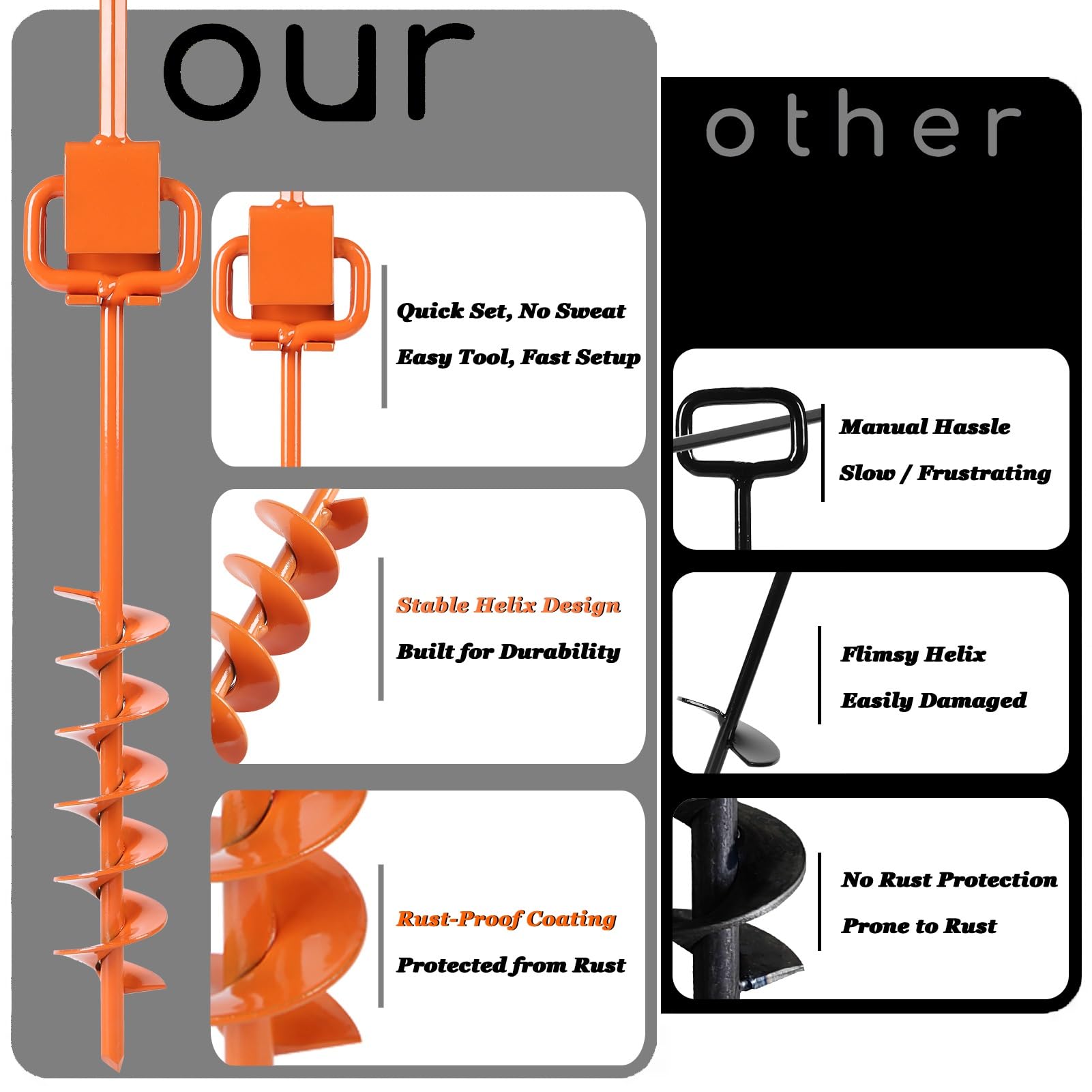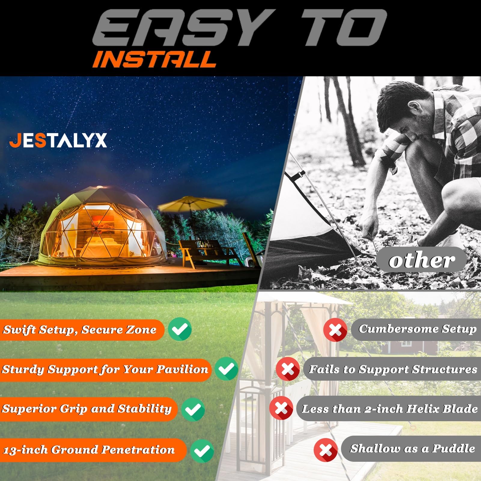 - Rock-Solid Reliability: Seeking stability? You've found it! Our 15-inch Ground Anchors Heavy Duty are here to save the day. Whether you're setting up a tent, gazebo, or trampoline, these ground anchors screw in ensure your equipment stays put, no matter what. And with three sleek colors to choose from—black, silver, and orange—your setup will look as good as it performs