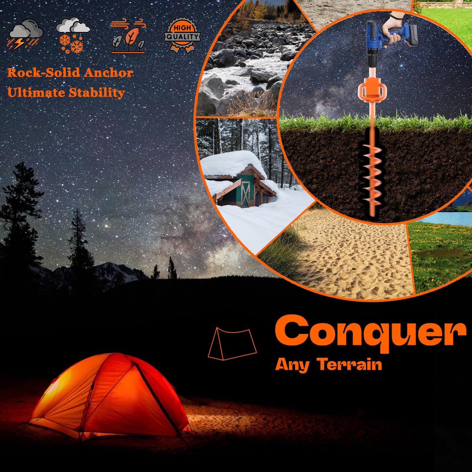 - No Fuss, All Fun - Setup Simplified: Why make life complicated? Our tent screw come with an exclusive adapter, letting you drive the anchors for tent directly into the ground with ease. No more wrestling with tough terrain or bad weather. Secure your outdoor equipment in record time, and spend more time doing what you love—relaxing and enjoying the great outdoors
