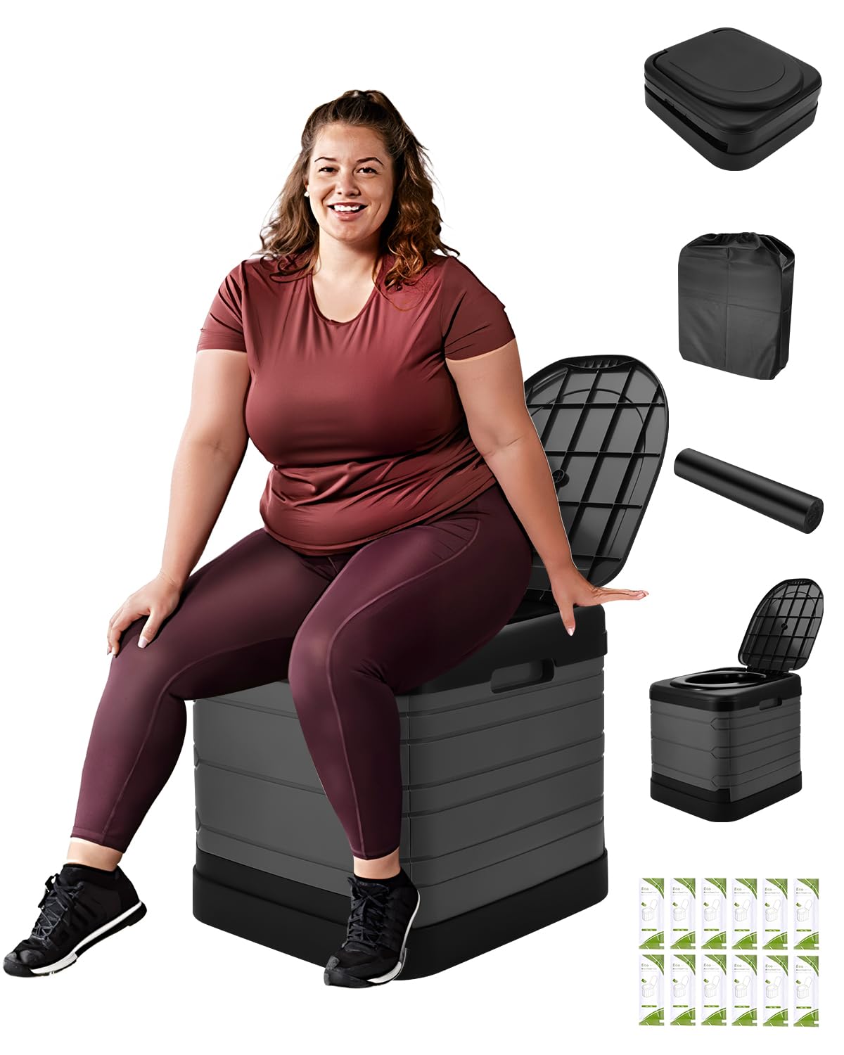 16.5in Hutigertech XXXL Portable Toilet,Upgraded Collapsible Travel Toilet with toilet bags & Absorbent Gel Powder for Camping, Hiking, Car, Outdoor, Boat, Beach and RV Travel